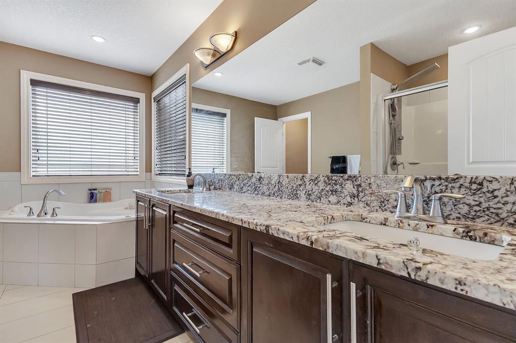 Corner Lot | Approx 2500 SQFT | Mainfloor Bedroom | Custom Woodwork | 2 Ensuites. Stunning 2,500 sq. ft. Fully Upgraded Two-Storey in Bayside. Discover this beautifully designed two-storey home in the sought-after Baywater community, ideally located on a spacious corner lot with a rear paved lane—just steps from Nose Creek Elementary School, parks, and the scenic Canal pathway. This custom-built layout offers a bright family room with a cozy fireplace and built-in cabinetry, a chef’s kitchen with ceiling-height cabinetry and a walk-through pantry, and a formal dining room—perfect for entertaining. A versatile main-floor den can serve as a home office or optional fourth bedroom. Upstairs, you’ll find three generously sized bedrooms and three full bathrooms. The luxurious primary suite boasts a spa-inspired 5-piece ensuite. The second bedroom features its own 4-piece ensuite, while the third bedroom enjoys convenient access to the main 4-piece bath. A spacious bonus room and an upper-level laundry add practicality and comfort. This home showcases exceptional finishes, including hand-scraped hardwood, designer tile, custom railings, in-stair lighting, 8' doors with oversized headers, and 9' ceilings on both the main and lower levels. The exterior is equally impressive with upgraded siding, a rear deck, and an insulated 21' x 23' garage. A perfect family-friendly location where kids can easily walk to school and nearby parks.