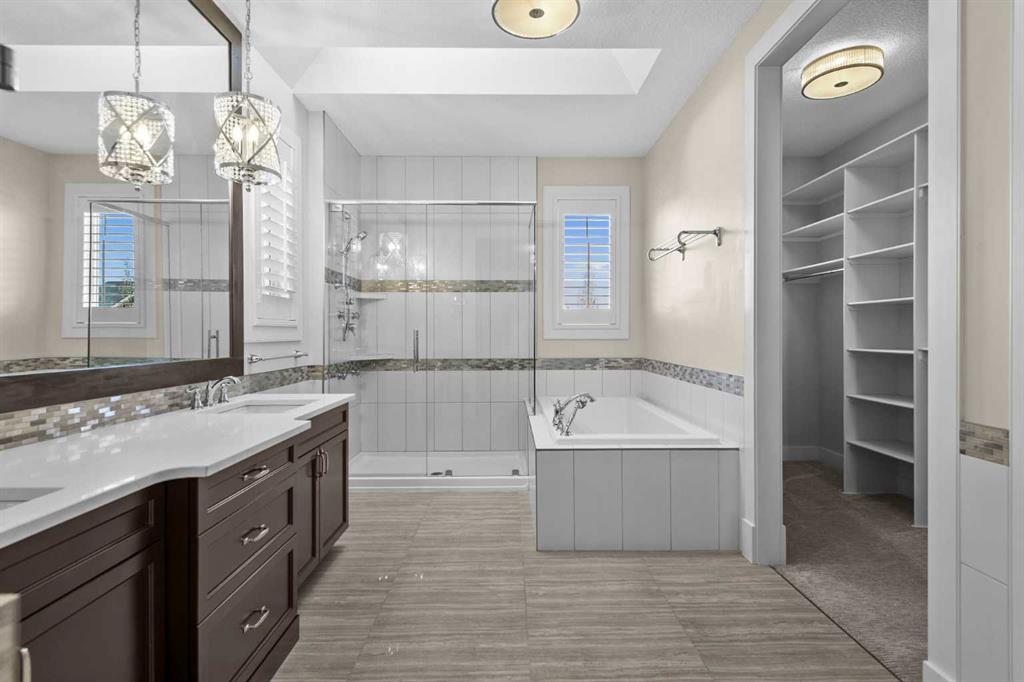 Upstairs, the sunlit bonus room offers two built-in workspaces — ideal for homework, music, or creativity. The spacious primary suite features a large walk-in closet and a spa-inspired 5-piece ensuite with heated tile floors. Two additional bedrooms, a stylish 4-piece bath, and a well-designed laundry room with storage and counter space complete the upper level.