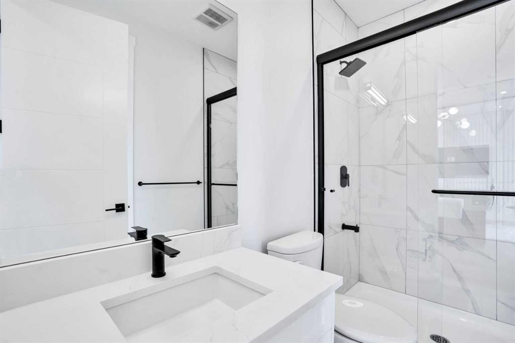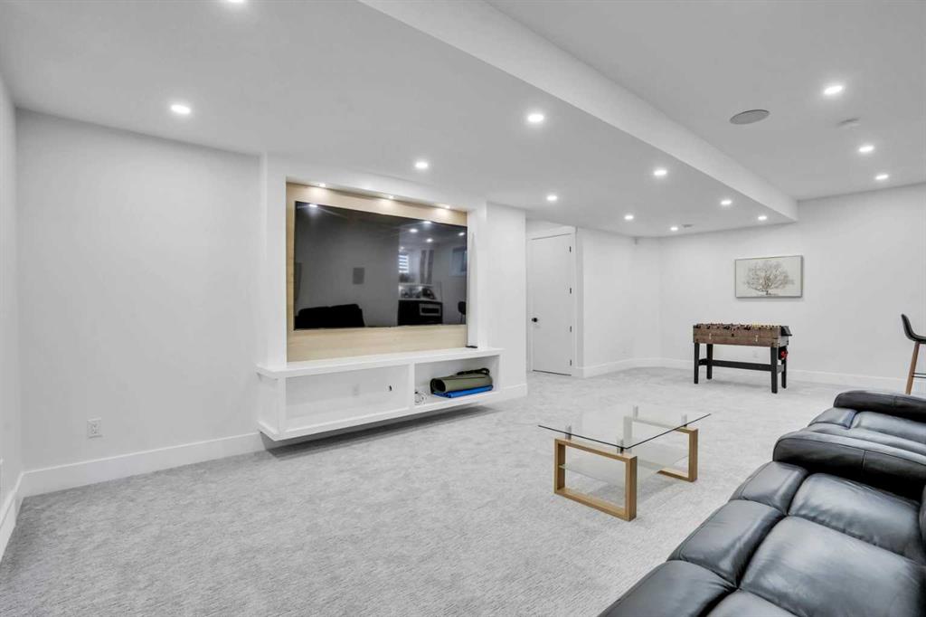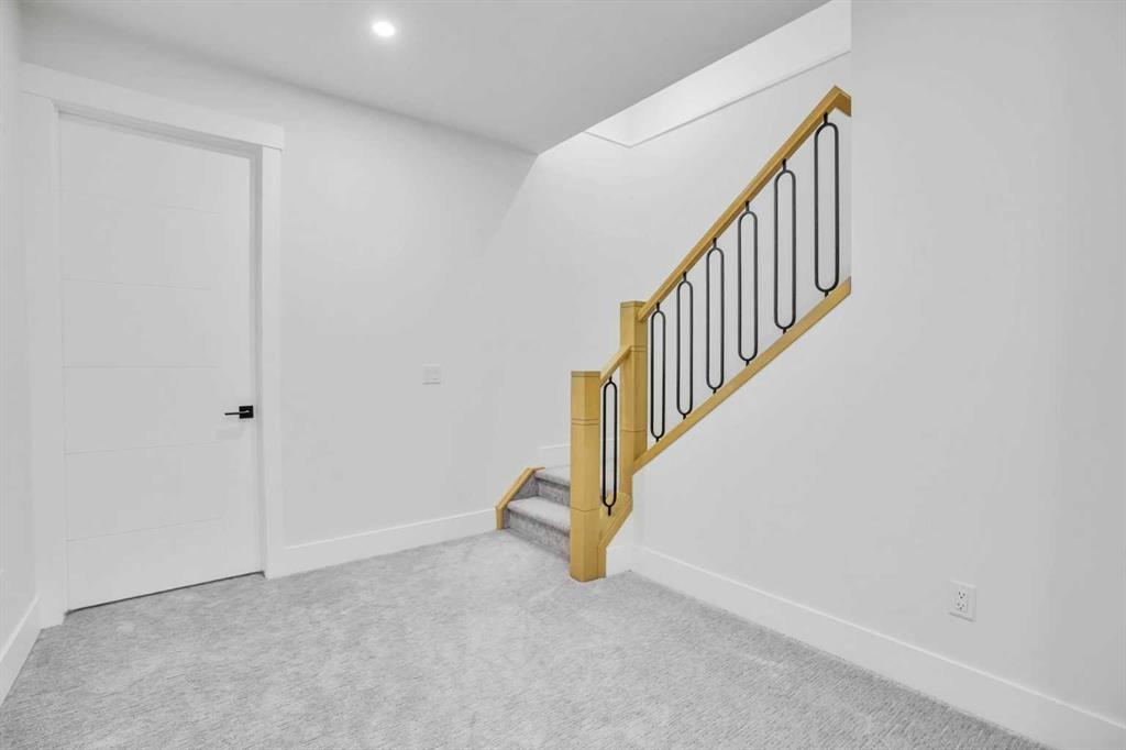 Welcome to Luxury Living in the Desirable Community of Coopers Crossing! This stunning luxury estate home offers over 4,100 square feet of living space in the sought-after community of Coopers Crossing in Airdrie. Upon entering this beautiful home, you'll be greeted by a grand foyer with vaulted ceilings leading to the upper floor. The main floor of the home features 10-foot ceilings and a versatile office space that can be used as a bedroom. A full bathroom is also located on the main floor. The open-concept layout boasts a cozy family room with a gas fireplace and custom feature wall, a formal dining room with coffered ceilings and custom feature walls, and a dream chef's kitchen with a waterfall island and seating area. High-end Kitchen-Aid appliances, built-in oven, gas range, and a large built-in refrigerator are the highlights of this beautiful kitchen. The kitchen area also features a spice kitchen/pantry with a gas range and refrigerator. The entrance from the triple garage that has epoxy floors leads you to your large mudroom with storage for your coats and shoes. The upper floor features 9-foot ceilings, a large chandelier, and a feature wall leading to 4 bedrooms and 3 full bathrooms, including a primary suite with a large walk-in closet. The upper floor also features a large laundry room with a sink. A spacious bonus room with sliding doors leading to the upper balcony completes the upper floor. The fully finished basement has 9-foot ceilings, a built-in custom wet bar with a sink, microwave, and bar fridge, leading to a rec room with a feature wall wired in for a projector setup and surround sound. An additional bedroom and a 4-piece washroom complete the basement. The exterior is now landscaped and wired with custom gemstone lighting that can be used year-round, security system with cameras, and a large lot backing onto a green space walkway, the garage is also wired for an electric car charger. This home is designed and built with many upgrades, including engineered hardwood, custom railing, tile, feature walls, A/C and built-in closets. You don't want to miss the opportunity to own this dream home. Check our the 3D Tour and Schedule your showing today!