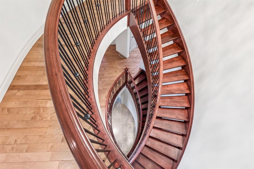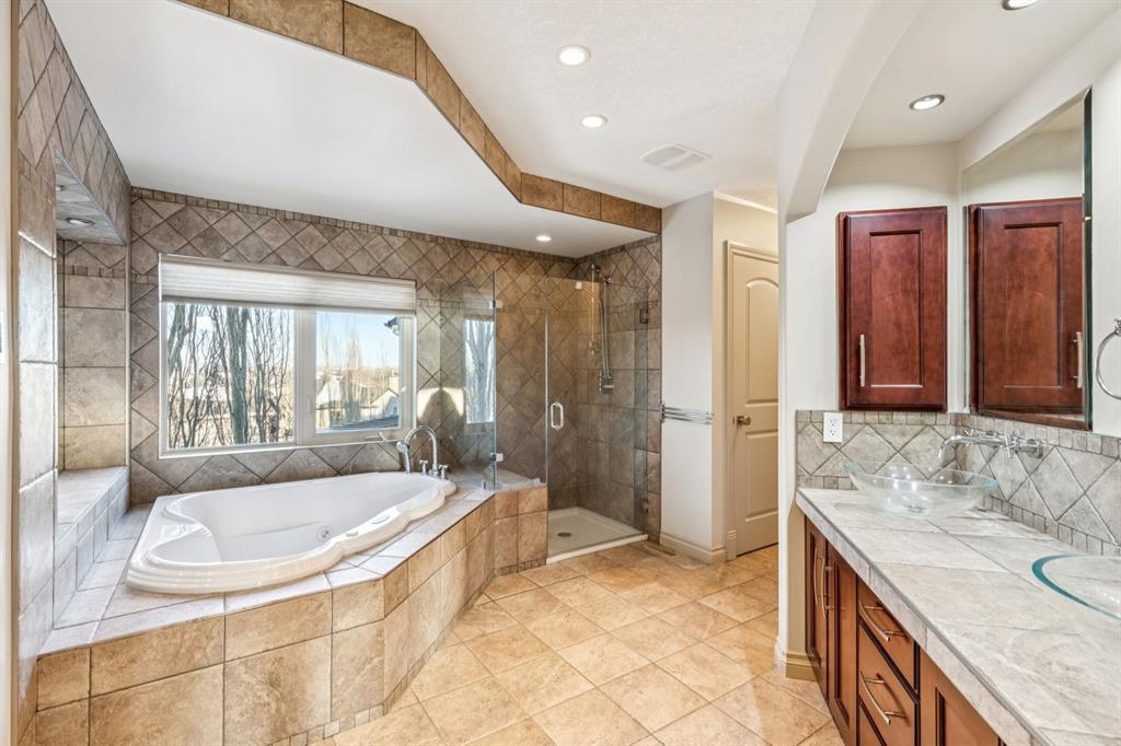 Welcome to an extraordinary custom-built, top-of-the-line geothermal estate tucked away on a quiet cul-de-sac in Airdrie’s most prestigious community—Coopers Crossing. Backing west onto green space, parks, and walking paths, this fully finished walkout home offers breathtaking sunsets, ultimate privacy, and a lifestyle few properties can match. Designed with no expense spared, this 5-bedroom, 3.5-bathroom residence blends striking architecture with leading-edge green technology, including geothermal heating & cooling, ICF foundation, tankless hot water on demand, in-floor radiant heating, and a heated oversized garage with hot & cold taps. Freshly painted in 2025, the home showcases timeless elegance with modern efficiency. Inside, you are greeted by soaring 9’ ceilings, crown molding, coffered details, extensive wall paneling, and a custom curved staircase that gracefully winds through all three levels. Rich cherry wood cabinetry, engineered hardwood, built-ins throughout, and upgraded lighting reflect exceptional craftsmanship and attention to detail. The chef’s kitchen is truly impressive, featuring high-end stainless appliances, a built-in Electrolux fridge/freezer, gas cooktop, prep sink, and an incredible Butler’s pantry with coffee station offering endless storage. Entertain effortlessly in the formal dining room or relax in the sun-filled living areas framed by expansive windows. Upstairs, the vaulted bonus room is a showstopper—complete with a full home theatre setup (projector, screen, amplifier, and subwoofer included). The primary retreat is a private sanctuary with a spa-like en suite, walk-in closet, and a separate reading/relaxation den. The fully developed walkout basement adds a home gym/craft room, additional bedrooms, bathroom, and exceptional storage. Step outside to enjoy multiple lower aggregate patios, two-tier decks, pergolas, a wood-burning exterior fireplace, and stunning professional landscaping complete with waterfall feature, stonework, underground sprinklers, and five cultured-stone retaining walls with custom caps. Additional highlights include screened-in upper balcony with gas line, exposed aggregate driveway with stamped border, central vacuum, in-ceiling speaker system, water softener, acrylic stucco exterior, and unbelievable curb appeal that feels straight out of a castle. Located in a family-friendly executive enclave, within walking distance to schools, parks, and amenities, and offering easy access out of town—this is more than a home; it’s a dream property and a rare opportunity to own one of Coopers Crossing’s finest residences. Book your private tour today and get ready to be blown away with this home’s impressive features!