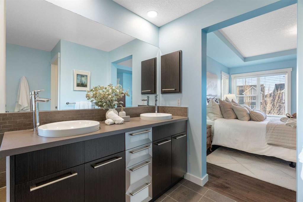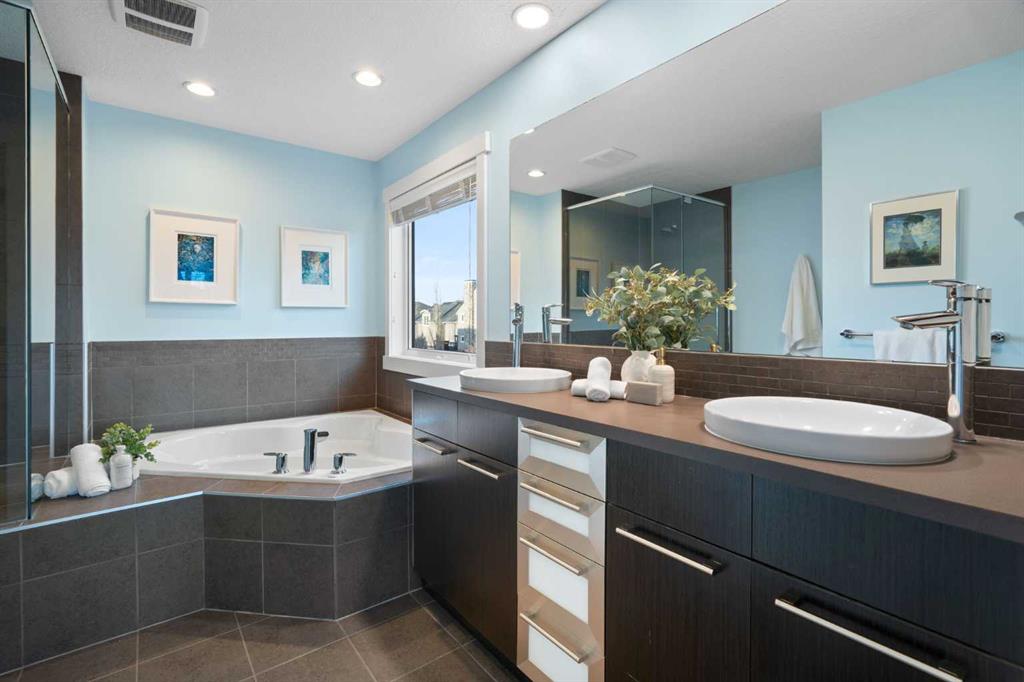 Hello, Gorgeous! Welcome to 1173 Coopers Drive SW, a former showhome located in the heart of Coopers Crossing, offering 5 bedrooms, a fully finished basement, and over 2,345 sq. ft. of above-grade living space. Designed to showcase the best of the community, this home delivers a refined, move-in-ready feel with fresh interior and exterior paint and thoughtful updates throughout. The main floor features a bright, functional layout ideal for both daily living and entertaining, with a spacious kitchen, walk-in pantry, dedicated home office, custom mudroom cabinetry, and seamless flow into the dining and living areas. Upstairs, the primary retreat includes a 5-piece ensuite and custom walk-in closet, complemented by two additional bedrooms, a full bathroom, upper-level laundry, and a generous family room. The fully finished basement expands the home’s versatility with two additional bedrooms, a full bathroom, and a large recreation room with heated floors, perfect for guests, teens, or extended family living. Outside, enjoy a backyard backing onto a park and playground, with a peaceful pond just steps away. Professionally landscaped front and back yards, a heated double attached garage, and smart-home upgrades complete this exceptional offering. A rare opportunity to own a former showhome in one of Airdrie’s most desirable communities, This home truly needs to be seen to be appreciated.