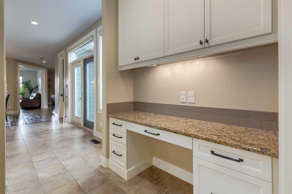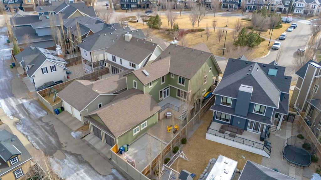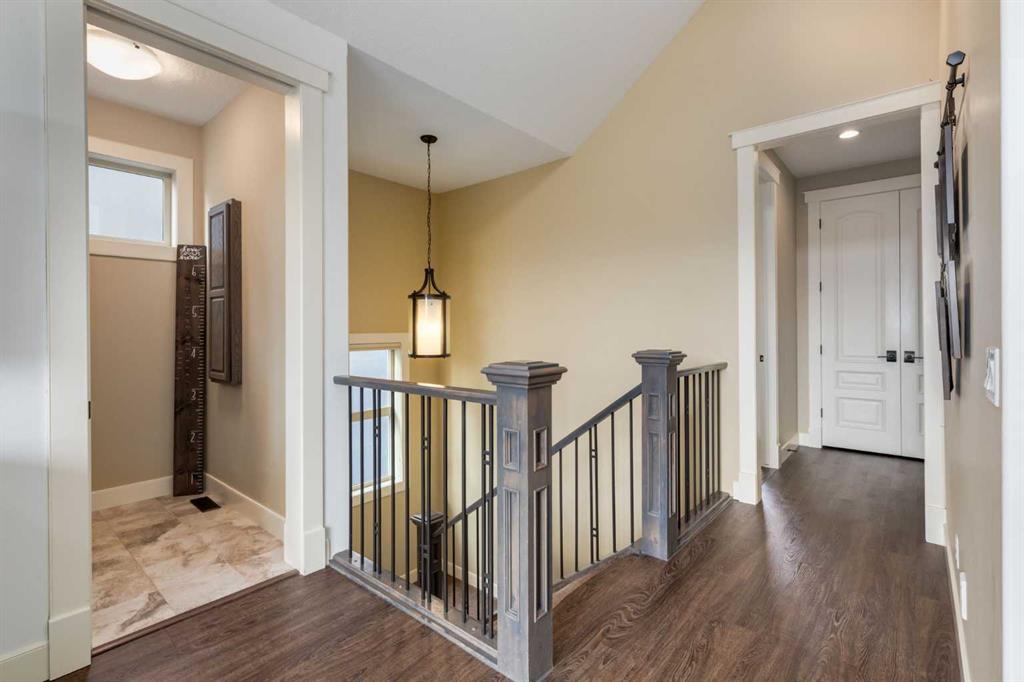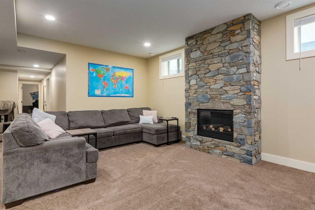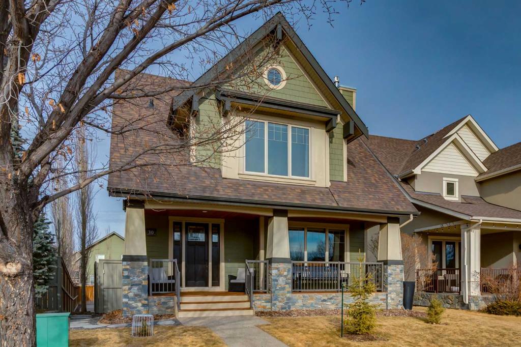Parkside elegance ~ Exceptional 5 Bedroom home in the Estates of Cooper’s Crossing with over 3,500 sqft of beautiful finished living space, perfectly positioned on one the community’s most sought-after streets! Cooperstown Court is quiet, family-friendly, with under 30 homes centered around a park and mature green space! Immediately admire its full-width front porch, an incredible place to unwind while enjoying peaceful park views, and the home’s striking stonework and architectural presence. The main floor showcases 9’ ceilings, rich hardwood flooring, and a big tiled Foyer with an organized front closet to welcome you. The front Living Room is anchored by a stunning gas fireplace with full stone surround and wood mantle, framed by large windows overlooking the park. Truly standing-out as the heart of this home is the stunning Kitchen…With floor-to-ceiling classic light cabinetry, granite countertops, tiled backsplash, SS appliances, coffee centre, pantry, AND a massive eat-up island with a built-in sink. From here, step outside to the private backyard oasis with all day sun! Featuring a raised deck, lower stone patio, and fully fenced yard! This open layout is made for entertaining, the Dining area sits between the Kitchen & Living Room, elegantly framed by tile inlay, with an adjacent corner cocktail counter including built-in cabinetry & beverage fridge to tie it all together. Also on the main-level is a huge Office featuring a big window & extensive built-in desk with loads of cabinetry, a spacious Mudroom with built-in desk space, bench seating, surrounded by custom storage & elegant hooks, plus a convenient 2-pc Powder Room. Upstairs, the vaulted Bonus Room has built-in speakers and captures beautiful park views, creating the perfect family retreat. The Primary Suite is a luxurious escape featuring abundant natural light and a spa-inspired 5-pc Ensuite, with fully tiled oversized walk-in shower, dual vanities with stone counters & a full-length mirror, soaker tub beneath the opening window, and SKYLIGHT. The Walk-in Closet is finished with custom wood shelving for a refined touch. Two spacious secondary Bedrooms, a stylish 4-pc Bathroom, and convenient top-floor Laundry add everyday functionality. The builder-finished Basement continues the home’s elevated feel with tall ceilings, bright windows, plush carpeting, and a Family / Rec Room with a spectacular floor-to-ceiling stone gas fireplace. This level also offers TWO additional Bedrooms and a magazine-worthy 3-pc Bathroom with stone counters and a fully tiled oversized walk-in shower - bringing the home to a total of FIVE BEDROOMS! There’s even Central A/C for year-round comfort, but we saved the best for last…The impressive 30 x 23 OVERSIZED DOUBLE DETACHED GARAGE is insulated, drywalled, and features exceptional HEIGHT —ideal for maximizing storage or accommodating a hoist. Located just a short walk to nearby schools, pathways, and amenities, this is a rare opportunity to find!