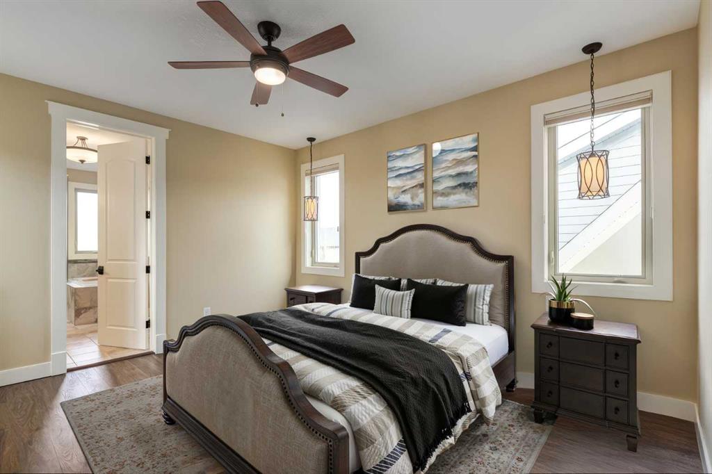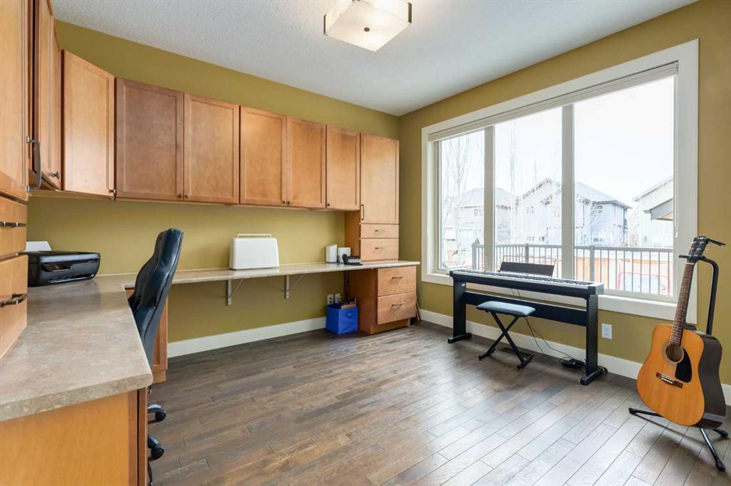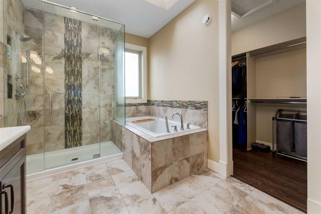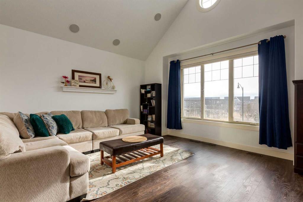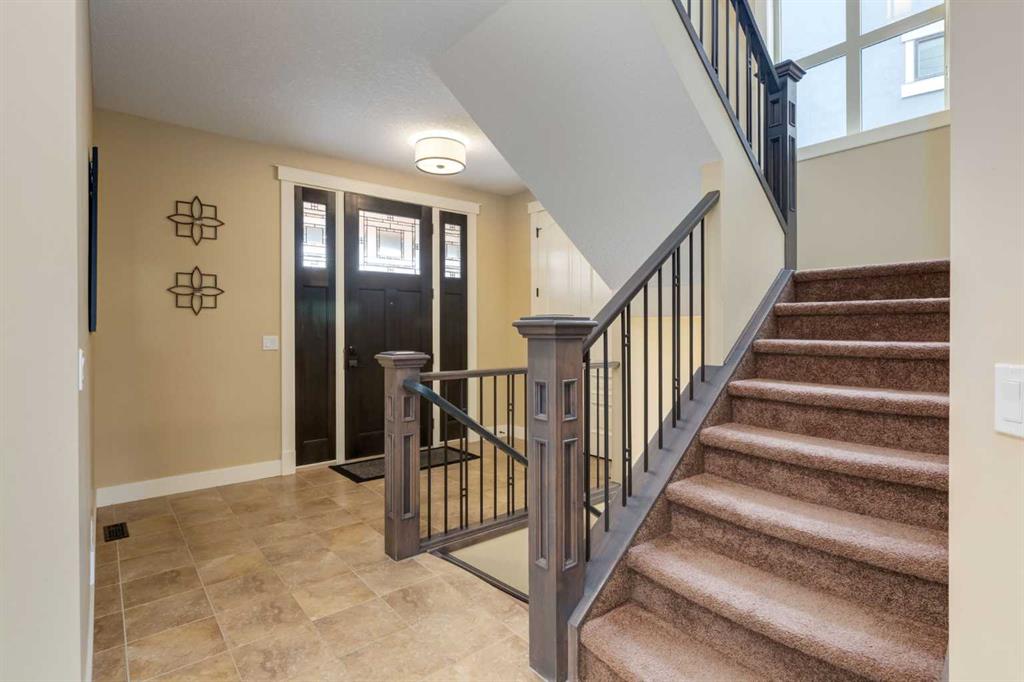 Parkside elegance ~ Exceptional 5 Bedroom home in the Estates of Cooper’s Crossing with over 3,500 sqft of beautiful finished living space, perfectly positioned on one the community’s most sought-after streets! Cooperstown Court is quiet, family-friendly, with under 30 homes centered around a park and mature green space! Immediately admire its full-width front porch, an incredible place to unwind while enjoying peaceful park views, and the home’s striking stonework and architectural presence. The main floor showcases 9’ ceilings, rich hardwood flooring, and a big tiled Foyer with an organized front closet to welcome you. The front Living Room is anchored by a stunning gas fireplace with full stone surround and wood mantle, framed by large windows overlooking the park. Truly standing-out as the heart of this home is the stunning Kitchen…With floor-to-ceiling classic light cabinetry, granite countertops, tiled backsplash, SS appliances, coffee centre, pantry, AND a massive eat-up island with a built-in sink. From here, step outside to the private backyard oasis with all day sun! Featuring a raised deck, lower stone patio, and fully fenced yard! This open layout is made for entertaining, the Dining area sits between the Kitchen & Living Room, elegantly framed by tile inlay, with an adjacent corner cocktail counter including built-in cabinetry & beverage fridge to tie it all together. Also on the main-level is a huge Office featuring a big window & extensive built-in desk with loads of cabinetry, a spacious Mudroom with built-in desk space, bench seating, surrounded by custom storage & elegant hooks, plus a convenient 2-pc Powder Room. Upstairs, the vaulted Bonus Room has built-in speakers and captures beautiful park views, creating the perfect family retreat. The Primary Suite is a luxurious escape featuring abundant natural light and a spa-inspired 5-pc Ensuite, with fully tiled oversized walk-in shower, dual vanities with stone counters & a full-length mirror, soaker tub beneath the opening window, and SKYLIGHT. The Walk-in Closet is finished with custom wood shelving for a refined touch. Two spacious secondary Bedrooms, a stylish 4-pc Bathroom, and convenient top-floor Laundry add everyday functionality. The builder-finished Basement continues the home’s elevated feel with tall ceilings, bright windows, plush carpeting, and a Family / Rec Room with a spectacular floor-to-ceiling stone gas fireplace. This level also offers TWO additional Bedrooms and a magazine-worthy 3-pc Bathroom with stone counters and a fully tiled oversized walk-in shower - bringing the home to a total of FIVE BEDROOMS! There’s even Central A/C for year-round comfort, but we saved the best for last…The impressive 30 x 23 OVERSIZED DOUBLE DETACHED GARAGE is insulated, drywalled, and features exceptional HEIGHT —ideal for maximizing storage or accommodating a hoist. Located just a short walk to nearby schools, pathways, and amenities, this is a rare opportunity to find!