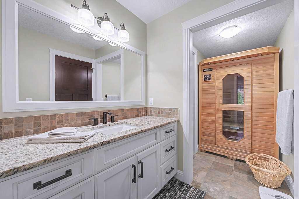 Downstairs, the fully finished walkout basement expands your living space with an additional bedroom, 4-piece bathroom with sauna, a huge rec room, and a cozy family room perfect for movie nights or game days. Walk out to your professionally landscaped, low-maintenance backyard, finished with high-end astroturf and exposed aggregate paths for year-round beauty without the hassle.