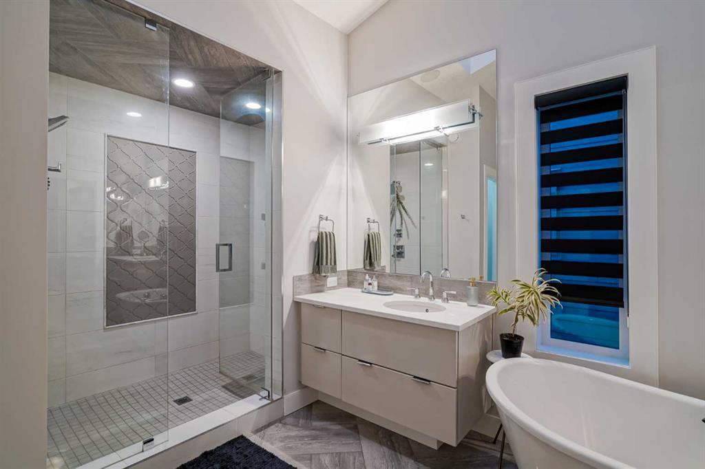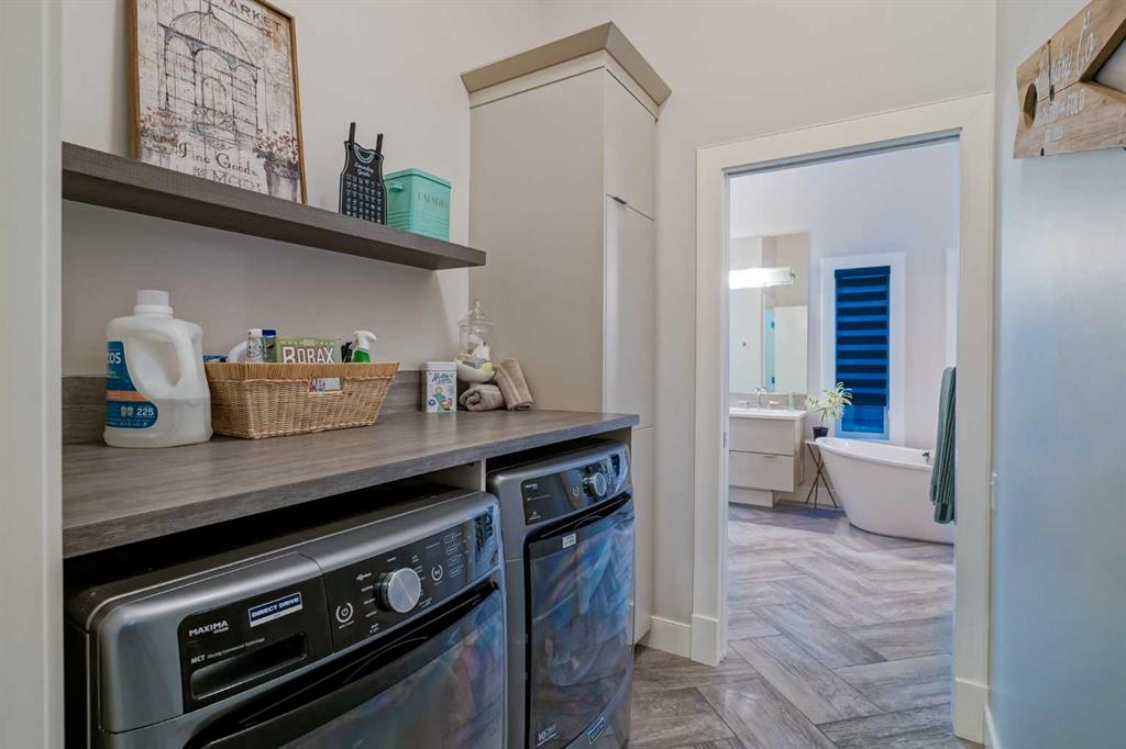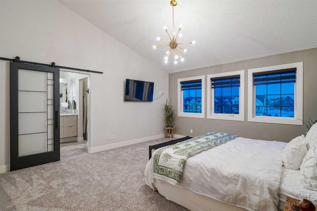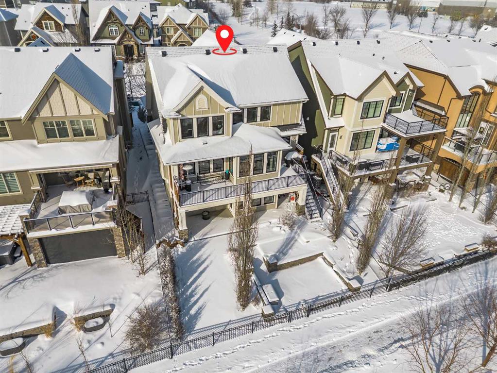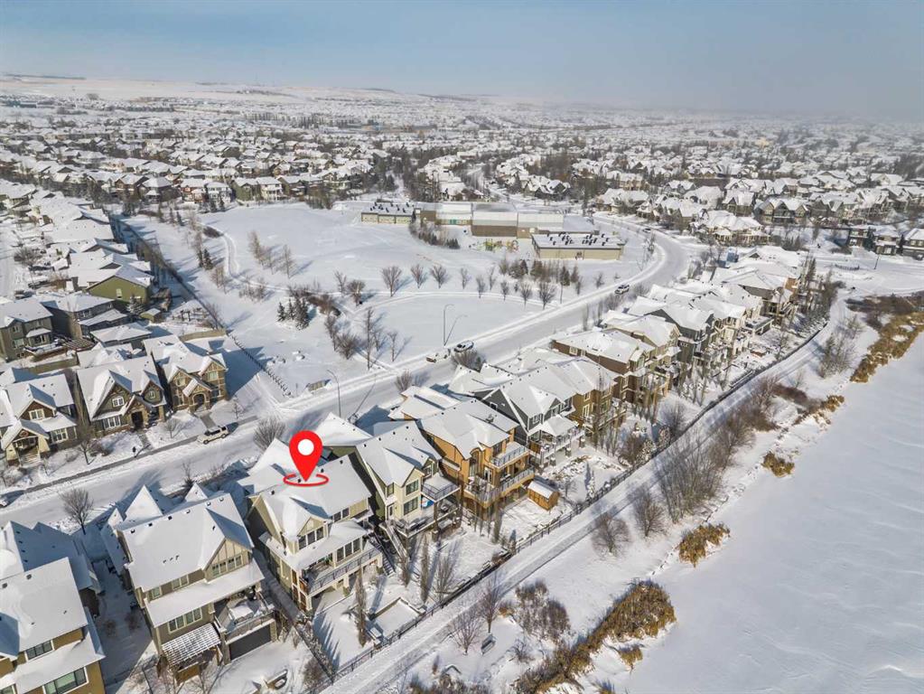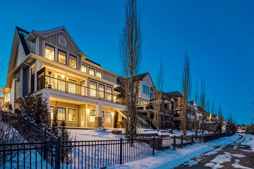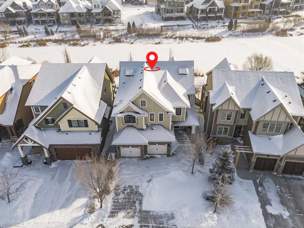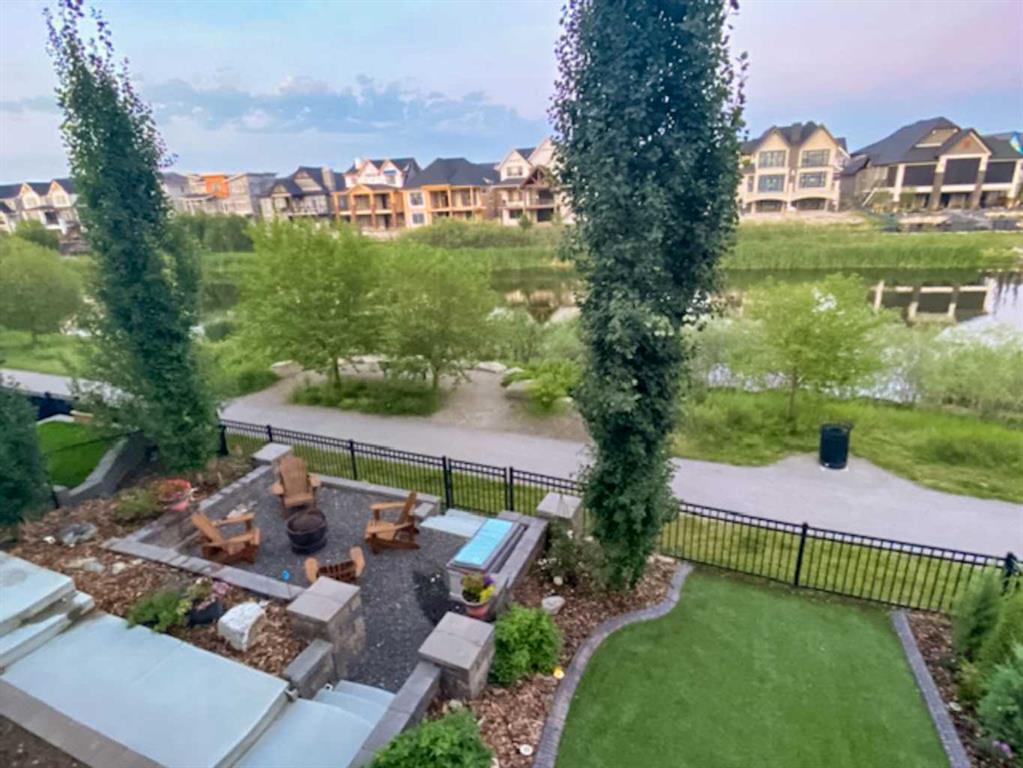 **OPEN HOUSE SAT MAR 7th 1PM - 3PM** Welcome to this exceptional McKee-built custom home in the prestigious community of Coopers Crossing, where refined craftsmanship meets unobstructed pond-side living. Offering over 3,700 sqft of professionally developed living space, this fully finished 4-bedroom, 3.5-bathroom walk-out home delivers an elevated lifestyle defined by architectural detail and premium upgrades. From the moment you arrive, the curb appeal is undeniable - an exposed aggregate driveway, covered front porch with cedar soffit detailing, and a fully landscaped lot create a strong first impression. The 708 sqft triple tandem heated garage is both functional and impressive, complete with overhead storage and room for vehicles, toys, or workshop space. Inside, a dramatic open-rise staircase anchors the main level, while engineered hardwood flooring flows throughout. The great room is designed for both everyday living and upscale entertaining, featuring a custom fireplace surround with built-ins and expansive windows framing tranquil pond views. The chef-inspired kitchen is a true showpiece. Thoughtfully upgraded with crisp white cabinetry, double islands, and premium stainless steel appliances, it includes a 48” Jenn-Air dual-fuel gas range, Vent-A-Hood range hood, and Electrolux side-by-side refrigerator/freezer. An exquisite under mount sink and refined finishes complete this elevated culinary space. From this level, step outside to your private backyard oasis: a full-width 33’4” x 9’8” composite deck with stairs leading to professionally designed stone scaping, low-maintenance turf, and a dedicated firepit and patio area (15’4” x 10’4”). Upstairs, vaulted ceilings and two skylights flood the bonus room, primary suite, ensuite, and laundry room with natural light. The primary retreat offers serene water views and a spa-inspired ensuite designed for relaxation. Three additional bedrooms complete the upper level, including one with a charming Juliet balcony. The fully developed walk-out basement extends the living space seamlessly outdoors and features a wet bar, spacious recreation area, hobby room, and additional storage. Morning coffees overlooking the water in summer. Skating on the pond in winter. This is a home designed to be experienced in every season. Additional highlights include upper-level exterior pot lights, custom built-ins throughout, security camera system and panel, pre-wired in-ceiling speakers with two Sonos bridges, dual furnaces plus A/C. Rarely do homes combine this level of finish, functionality, and uninterrupted pond views in one of Airdrie’s most sought-after communities. This is luxury living - without compromise.