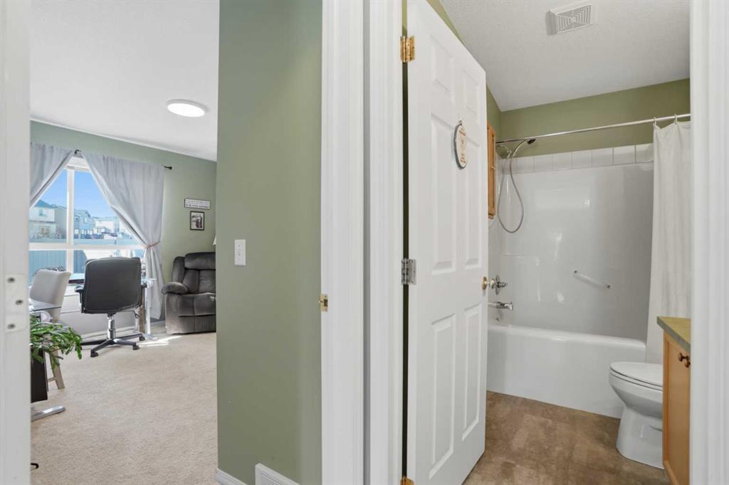 WOW! Take a look at this incredible end-unit duplex in the West Point Villas II complex, in the sought-after neighbourhood of Fairways, NW Airdrie! Boasting 1,881 square feet of fully developed living space, this home features 3 bedrooms + den, and 3 full bathrooms! Noteworthy upgrades/updates include a tastefully renovated kitchen (with bright white cabinetry, laminate countertops, and newer appliances), a newly custom-built glass-enclosed walk-in shower in the primary ensuite, central air conditioning, central vacuum system, cozy natural gas fireplace in the living room, and upgraded flooring throughout (hardwood, linoleum, and plush carpet). The furnace has been recently serviced and new smoke/CO detectors have been installed for added peace of mind. Additional highlights include a large, private, fully-fenced, south-facing backyard with a spacious composite deck and beautiful perennial garden, an insulated single attached garage with storage cabinetry, and a front driveway for extra parking. Don’t miss this rare opportunity—call today!
