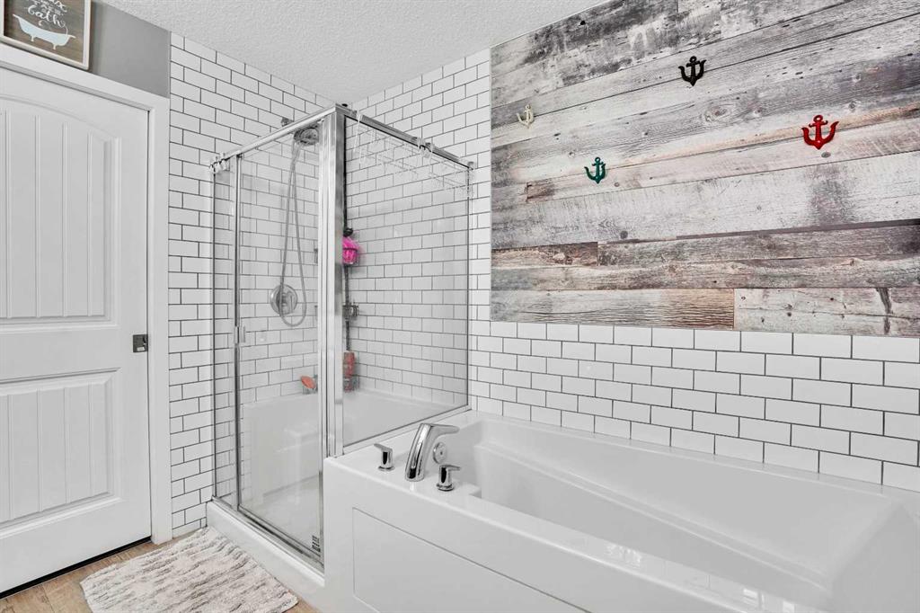 Upstairs, you’ll find a bright and inviting primary suite featuring stunning feature walls, a walk-in closet, and a luxurious 5-piece ensuite complete with dual sinks, a soaker tub and tiled shower. The upper level also offers other three additional spacious bedrooms, a 4-piece main bath, and a perfectly sized laundry room equipped with a pedestal sidekick washer.