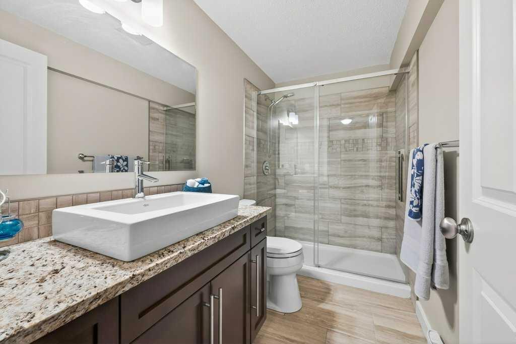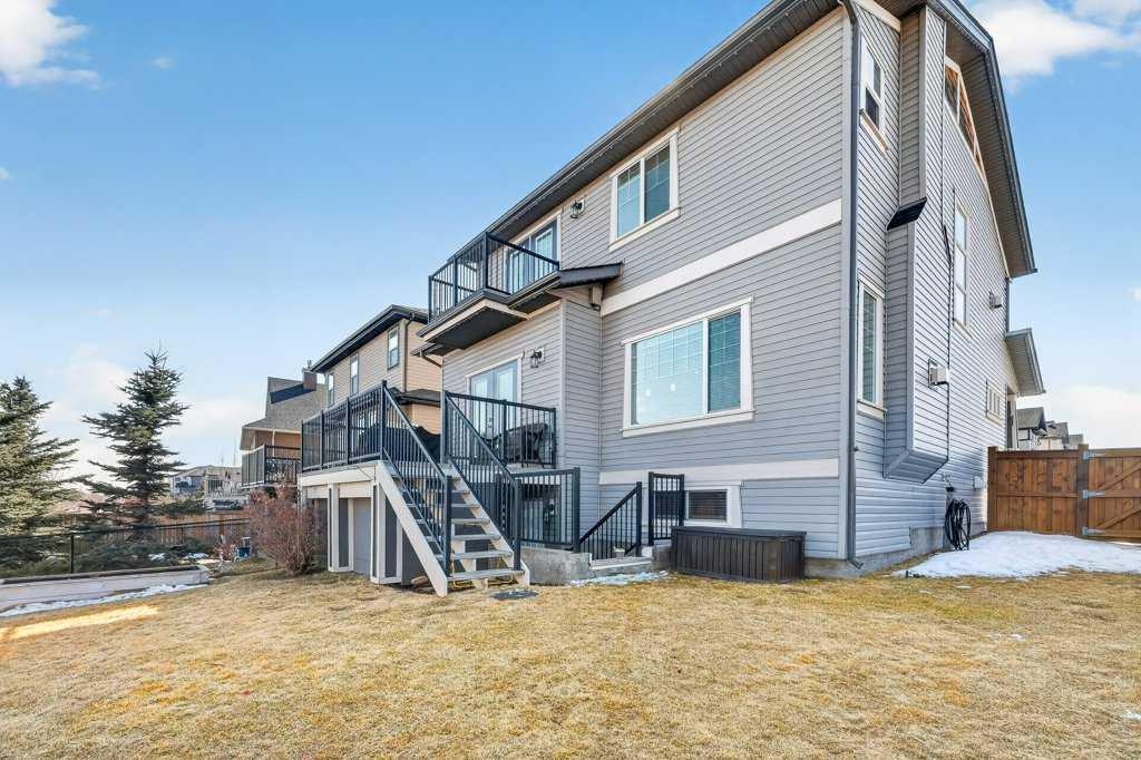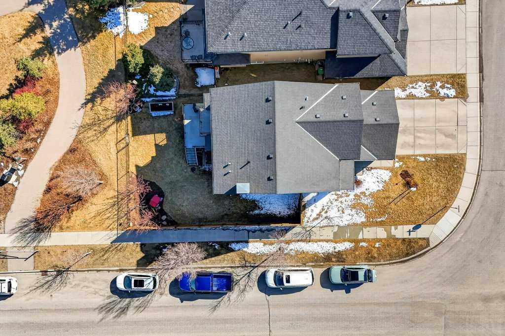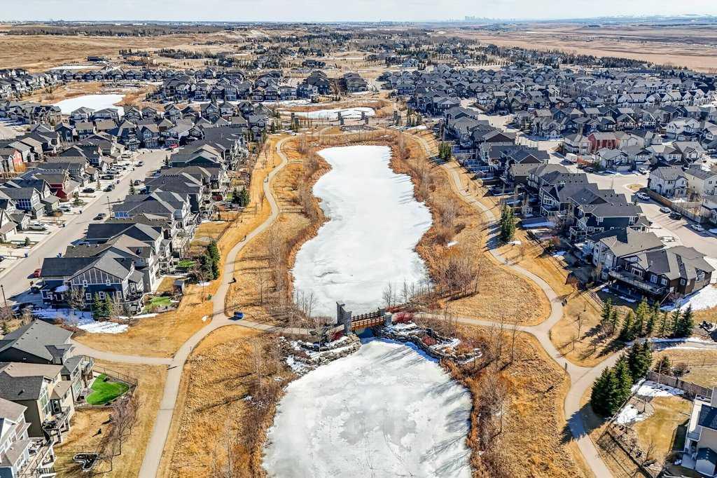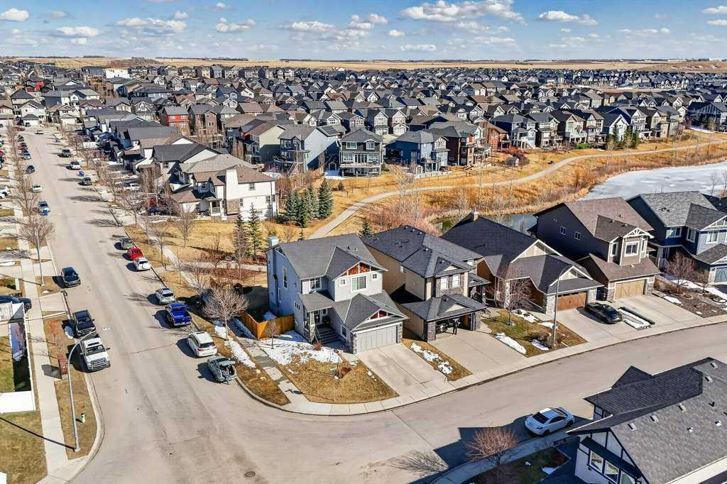 Absolutely immaculate, fully developed home with a walk-up basement in the beautiful community of Kings Heights. Situated on a desirable corner lot backing onto green space, this property also offers serene water views—truly a move-in-ready residence. A spacious, bright, and welcoming foyer leads into a modern kitchen featuring a central island with a granite sink, upgraded appliances including a gas stove and double oven, and stunning granite countertops. Ample cabinetry is complemented by a large walk-through pantry with custom wood built-ins, providing exceptional storage. The kitchen flows seamlessly into a generous living room highlighted by a stylish fireplace with a contemporary tiled mantle. The bright dining area opens onto a large, maintenance-free deck overlooking the fully landscaped backyard, green space, and walking paths. A convenient 2-piece powder room completes the main level. Enjoy the oversized, heated, and insulated double garage, offering extended length for larger vehicles. Upstairs, the impressive primary bedroom features a luxurious 5-piece ensuite with a deep soaker tub, separate shower, and walk-in closet. A private balcony provides beautiful views of the park and water feature. Two additional bedrooms are generously sized, each with walk-in closets, and share a spacious 4-piece bathroom with convenient access. The upper-level family room offers a cozy gathering space with its own fireplace, and a laundry area with upgraded, brand-new washer and dryer adds everyday convenience. The fully finished basement is exceptional, featuring an open recreation/media room with a wet bar, high-end cabinetry, and abundant pot lighting for a bright, inviting atmosphere. An additional bedroom and modern 3-piece bathroom with elegant tile finishes make it perfect for guests. Extra storage is available under the stairs and in the utility room. The walk-up basement provides a separate entrance from the backyard, ideal for added privacy or flexibility. As a corner lot, the home benefits from numerous additional windows, filling each room with natural light. The backyard is fully landscaped and ready to enjoy. Recent upgrades include a new furnace and hot water tank. This home comes with permanent lighting system...no more hanging Christmas lights! Located close to schools, shopping, and major transportation routes, this exceptional home is a true pleasure to show. Book your private tour today!