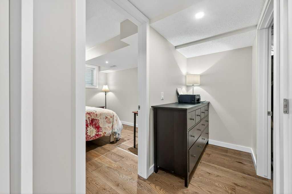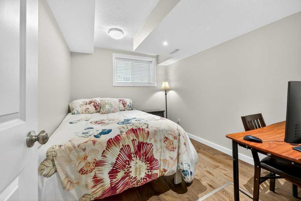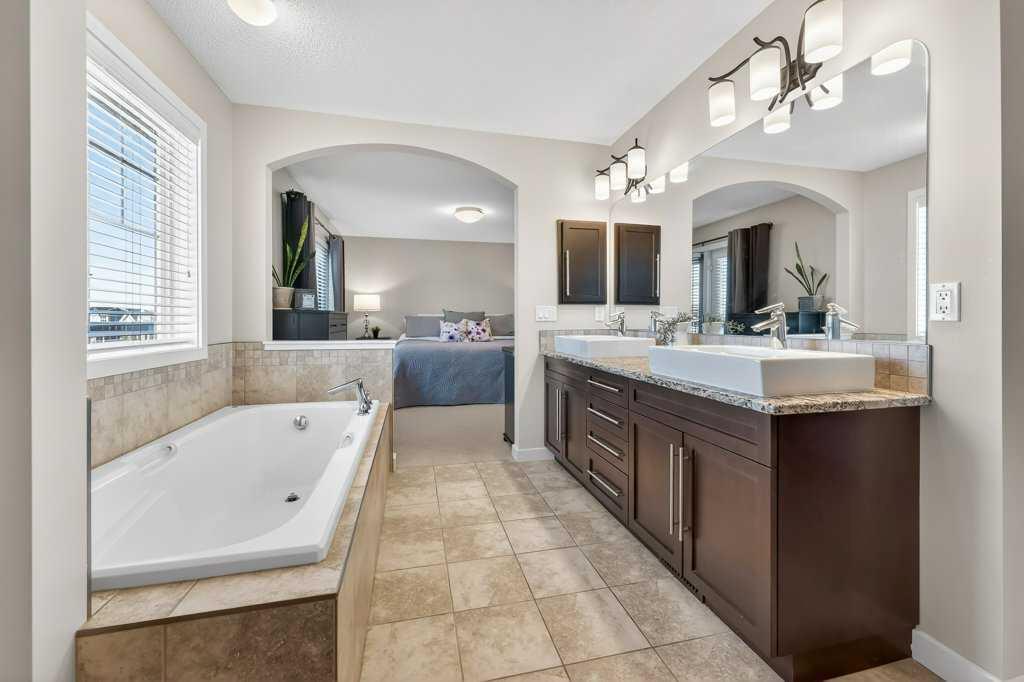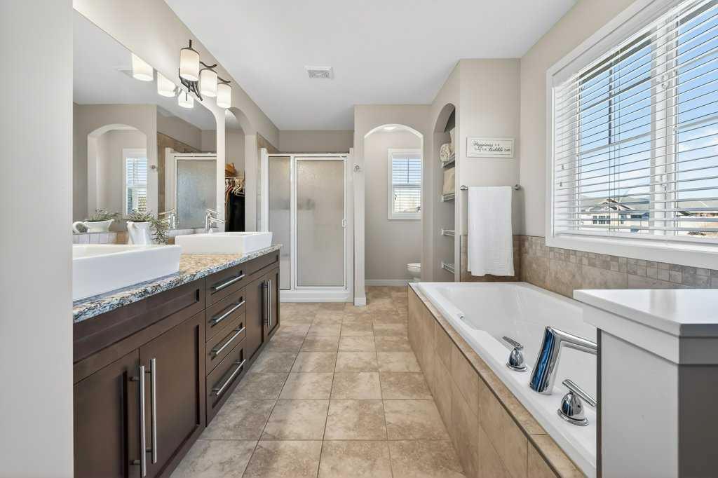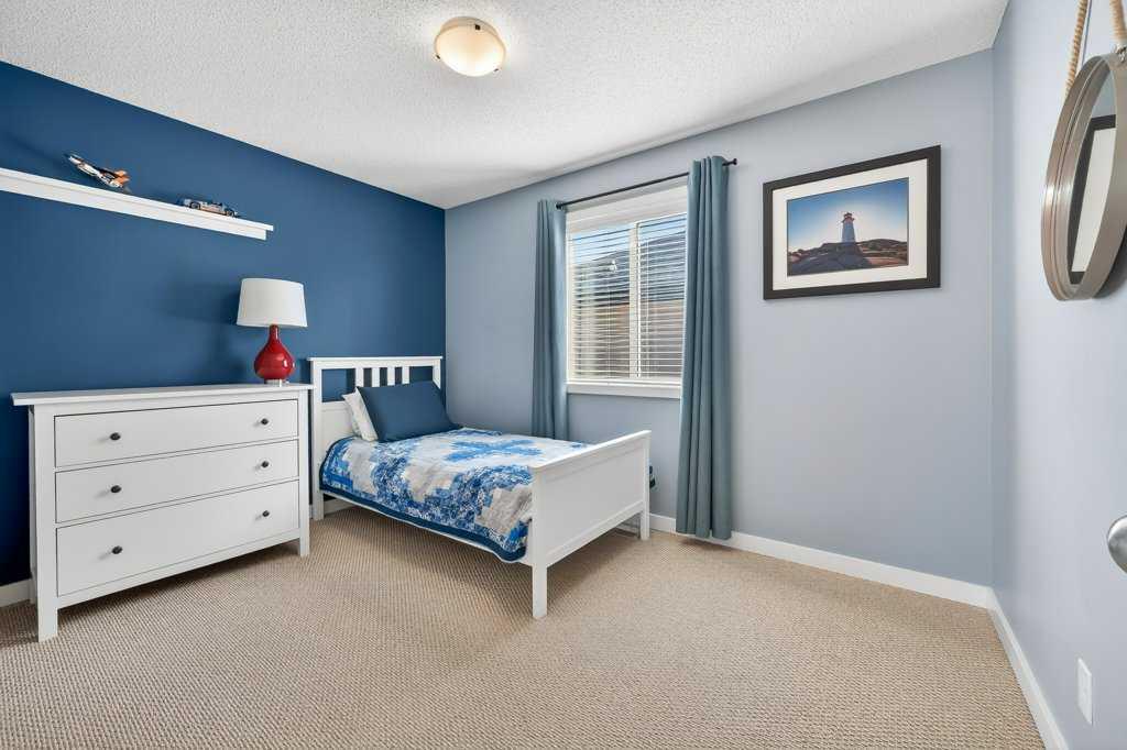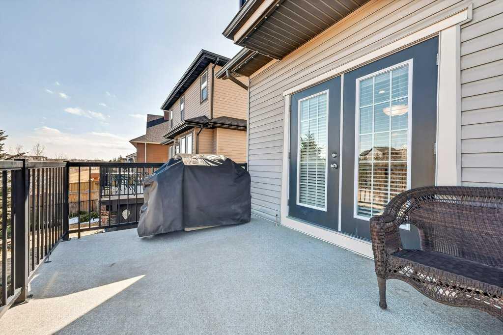 Absolutely immaculate, fully developed home with a walk-up basement in the beautiful community of Kings Heights. Situated on a desirable corner lot backing onto green space, this property also offers serene water views—truly a move-in-ready residence. A spacious, bright, and welcoming foyer leads into a modern kitchen featuring a central island with a granite sink, upgraded appliances including a gas stove and double oven, and stunning granite countertops. Ample cabinetry is complemented by a large walk-through pantry with custom wood built-ins, providing exceptional storage. The kitchen flows seamlessly into a generous living room highlighted by a stylish fireplace with a contemporary tiled mantle. The bright dining area opens onto a large, maintenance-free deck overlooking the fully landscaped backyard, green space, and walking paths. A convenient 2-piece powder room completes the main level. Enjoy the oversized, heated, and insulated double garage, offering extended length for larger vehicles. Upstairs, the impressive primary bedroom features a luxurious 5-piece ensuite with a deep soaker tub, separate shower, and walk-in closet. A private balcony provides beautiful views of the park and water feature. Two additional bedrooms are generously sized, each with walk-in closets, and share a spacious 4-piece bathroom with convenient access. The upper-level family room offers a cozy gathering space with its own fireplace, and a laundry area with upgraded, brand-new washer and dryer adds everyday convenience. The fully finished basement is exceptional, featuring an open recreation/media room with a wet bar, high-end cabinetry, and abundant pot lighting for a bright, inviting atmosphere. An additional bedroom and modern 3-piece bathroom with elegant tile finishes make it perfect for guests. Extra storage is available under the stairs and in the utility room. The walk-up basement provides a separate entrance from the backyard, ideal for added privacy or flexibility. As a corner lot, the home benefits from numerous additional windows, filling each room with natural light. The backyard is fully landscaped and ready to enjoy. Recent upgrades include a new furnace and hot water tank. This home comes with permanent lighting system...no more hanging Christmas lights! Located close to schools, shopping, and major transportation routes, this exceptional home is a true pleasure to show. Book your private tour today!