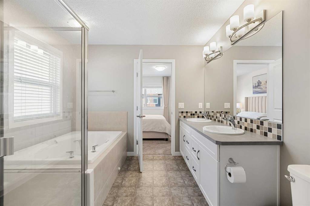 Welcome to 6 Kingsbury Close SE—FULLY FINISHED 2-storey home in impeccable condition, nestled in the sought-after community of Kings Heights, offering stunning west-facing mountain views paired with true turn-key, show home quality living. From the moment you arrive, the pride of ownership is undeniable. The home features a recently painted exterior, a fully landscaped yard complete with a dog run, and a heated, attached double garage. Step inside to a thoughtfully designed front entry with a built-in bench, ideal for keeping everyday life organized and functional. The main floor showcases a bright and airy open-concept layout, enhanced by beautiful hardwood flooring and large windows that flood the space with natural light. At the heart of the home is a timeless white kitchen, featuring granite countertops, a spacious pantry, and newer high-end stainless steel appliances. The kitchen flows effortlessly into the dining and living areas, where a cozy gas fireplace creates a warm and inviting focal point—perfect for both relaxed evenings and entertaining guests. Upstairs, you’ll find 3 generously sized bedrooms, including a primary retreat complete with a large walk-in closet and a spa-inspired ensuite featuring a double vanity, deep soaker tub, and separate shower. A spacious bonus room with soaring ceilings offers incredible versatility—ideal for a media room, play space, or home office—while upper-level laundry adds everyday convenience. The fully developed basement extends your living space with 2 additional bedrooms, a 3pc bathroom, and a substantial storage area, providing flexibility for growing families, guests, or multi-purpose use. This home is loaded with upgrades designed for comfort and efficiency, including central air conditioning, 16 solar panels, a brand new hot water tank, water softener, reverse osmosis water filtration system, smart lighting, and flood detection sensors. A sprinkler system rough-in is also in place for future ease. Perfectly situated in a family-friendly neighbourhood, just steps from schools, parks, scenic walking paths, and a nearby pond, this location offers the ideal balance of lifestyle and convenience. This is a rare opportunity to own a home that truly delivers on style, function, and condition—all in one of Airdrie’s most desirable communities. Call today to view!