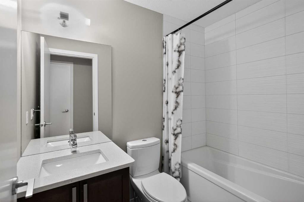 Welcome home. This beautiful 2 bedroom, 2 full bathroom home truly does have it all. Gorgeous wood floors span your open floor plan. Your chef inspired kitchen includes quartz counter tops, stainless steel appliances and a ton of cabinetry for storage. Adjacent to your kitchen is your dining area and living room making it the perfect space for entertaining or quiet nights at home with the family. Your primary bedroom is large enough for a king size bed and all of your additional bedroom furniture, brand new carpet, as well as offers you a spa inspired ensuite bathroom with walk-in shower, soaker tub and quartz topped vanity. The second bedroom is also very large, incudes brand new carpet and is just across from you additional full bathroom with tub/shower combination adorned with gorgeous tile tub surround and quartz topped vanity. Your north facing deck gives you a great outdoor space for morning coffee or a glass or wine at night and is complete with a gas hook-up for your BBQ. In suite laundry and storage finish off this perfect unit giving you over 872 square feet of total living space. Underground parking is paramount for those cold Calgary winters and an additional storage locker give you more space for your belongings. Auburn Bay is truly one of Calgary's most sought after communities with great schools, shopping near by and the South Health Campus. Do not miss out on this opportunity to own a gorgeous home in one of Calgary's greatest communities.