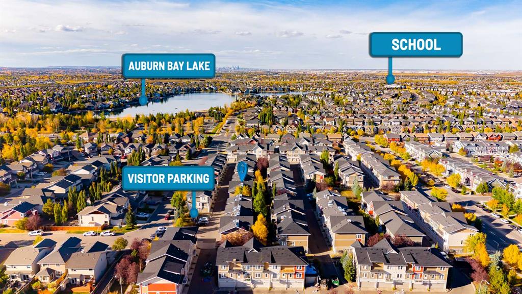 Welcome to this charming 1-bedroom, 1-bathroom end-unit townhouse in the desirable Auburn Bay community of Southeast Calgary. With its bright and open layout, this home is perfect for first-time buyers, downsizers, or investors looking for a well-maintained property in a vibrant lakeside neighbourhood. Step inside to a spacious living room flooded with natural light from the additional end-unit windows, creating a warm and inviting atmosphere for relaxing or entertaining. The galley-style kitchen features 41-inch high cabinets, granite countertops, and stainless steel appliances, providing both style and functionality. Enjoy your meals in the adjacent dining area or take the party outside to your private balcony, complete with a BBQ gas line rough-in, ideal for summer cookouts. The home offers cork and tile flooring throughout the main living areas for durability and easy maintenance, while the bedroom is cozy and carpeted, offering comfort and quiet. The 4-piece bathroom boasts a functional layout and full-sized laundry with convenient access from both the bedroom and the main living area. Storage is never an issue, with plenty of closets throughout, a storage room under the stairs, and additional space downstairs with direct access to the single attached garage. Modern conveniences include air conditioning, and the interior has been freshly painted throughout for a bright, move-in-ready feel. Major updates include a new roof installed in 2025 and a new garage door, providing peace of mind and long-term value. Being an end unit means more natural light and extra privacy, while the building is well maintained with low condo fees, making this a smart and affordable choice. Living in Auburn Bay offers an unbeatable lifestyle. Enjoy 4-season lake access with walking paths, parks, playgrounds, and a vibrant community feel. The area is also conveniently located near shopping, restaurants, schools, and major roadways for easy commuting throughout Calgary. This townhouse combines style, comfort, and convenience in a sought-after lakeside community. With recent updates, abundant storage, and a bright, open layout, it’s a move-in-ready home you’ll love. Don’t miss the opportunity to make this Auburn Bay gem yours!