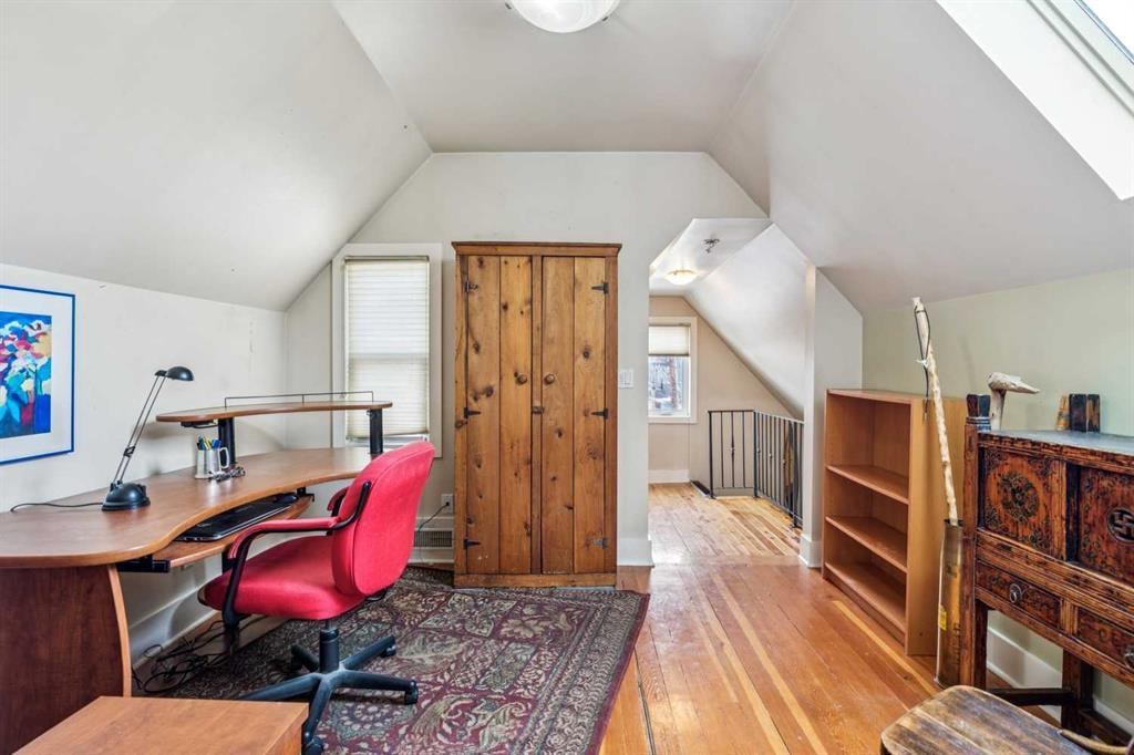 Welcome to this charming 1.5-storey home in the heart of vibrant Bridgeland one of Calgary’s most sought-after inner-city communities. Blending timeless character with thoughtful updates, this home features hardwood floors, an open-concept main level, and beautiful natural light throughout with sunny east-facing mornings and warm west-facing evenings. The main floor offers a functional and inviting layout, complete with a seperate room with a versatile Murphy bed which is perfect for guests or a flexible home office, along with a full bathroom featuring a classic clawfoot tub. The original brick chimney adds warmth and charm, creating a cozy yet stylish living space. Upstairs, you’ll find a spacious primary retreat filled with natural light, complete with a walk-in closet, a large shower in the bathroom, and a dedicated home office setup - ideal for today’s lifestyle. The outdoor spaces are just as impressive. Enjoy your morning coffee on the sunny back deck, relax in the shaded garden by the fire pit, or take in the beauty of the garden especially stunning in the spring. Designed for both entertaining and everyday enjoyment, this home offers a seamless indoor-outdoor experience. Additional highlights include a well-appointed kitchen with ample storage, a quiet lower-level den perfect for guests with easy access to a full bath, and a detached garage (no scraping or plugging in during winter) plus unrestricted street parking. Unbeatable location just steps to all that Bridgeland has to offer. Walk to your favourite coffee shops, local restaurants, Bridgeland Market, and the popular summer farmer’s market. With the Bow River pathways and LRT just blocks away, commuting downtown is effortless whether by foot, bike, or transit. A rare opportunity to enjoy character, comfort, and an exceptional lifestyle in one of Calgary’s most beloved communities.