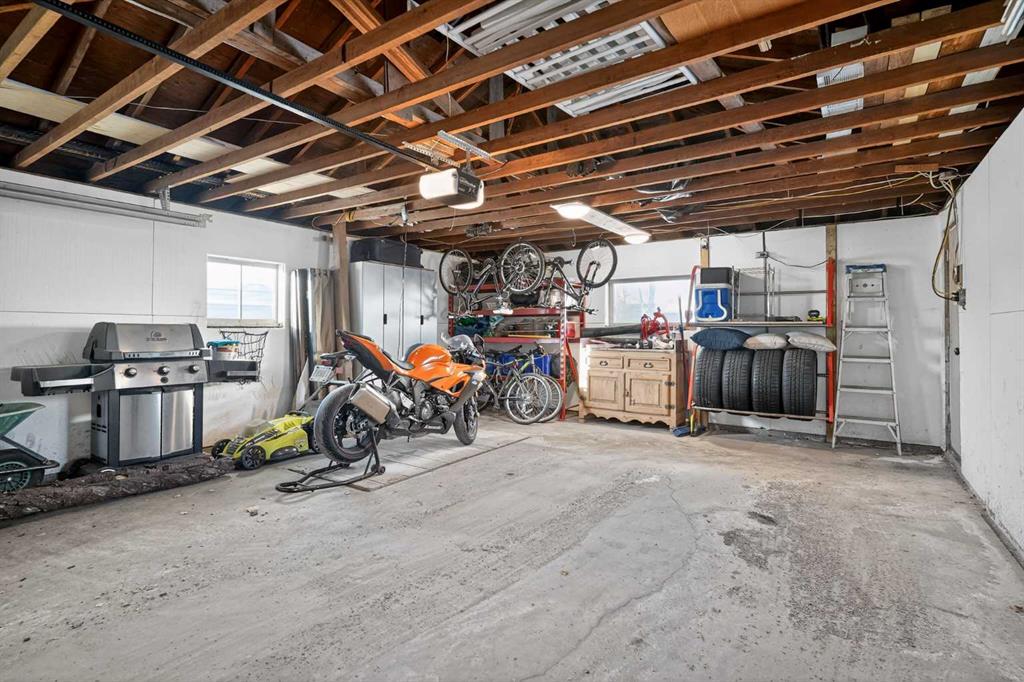 Outside, enjoy a fully landscaped yard, a large sundeck ideal for entertaining, and an irrigation system (minor repair required). The large concrete double detached garage includes a gas line rough-in for future heating and an oil change pit, offering added functionality for hobbyists or workshop use.