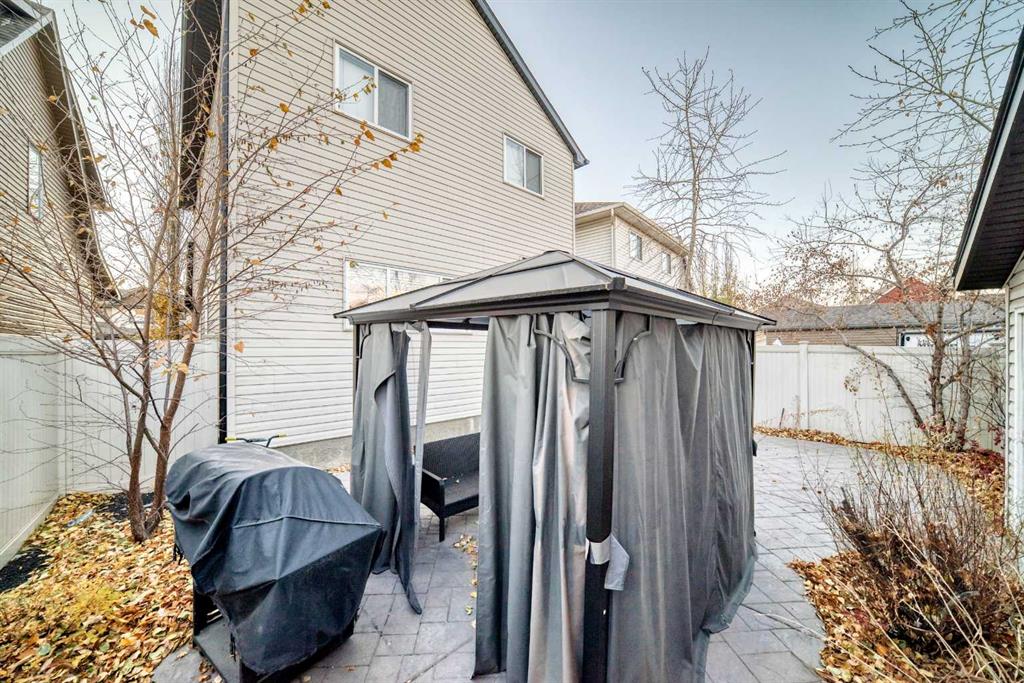 This stunning home boasts over 1,700 sq ft of living space and is meticulously maintained. The front yard features a unique, low-maintenance landscape with mature trees, large rocks, and a beautiful front porch with composite decking and glass railings. Step inside to discover a spacious great room with plenty of windows and a cozy fireplace. The main floor also includes a dining room, stainless steel kitchen appliances, granite countertops, a kitchen island, pantry, and a tech space perfect for a home office. The upper level features a generous primary bedroom with a walk-in closet and a luxurious 4-piece ensuite, complete with a walk-in shower and soaker tub. Two additional bedrooms, one with a walk-in closet, and a convenient walk-in laundry room complete the upper level. The backyard is a true oasis, featuring a concrete patio, gazebo (furniture not included), a double detached garage, and an additional gravel parking for an extra car or RV. Schedule a private viewing today - call or text to make it yours!