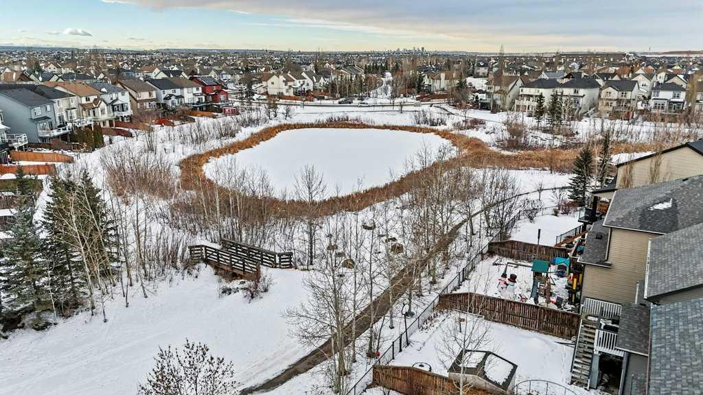 Occasionally a property comes along that has that truly perfect location…this is the one! Located on a quiet family-friendly street backing onto an expansive green space, wetlands park & miles of pathways to enjoy strolls through nature! Walk to local schools, parks, convenience shopping & major transit lines. Inside you will discover an excellent open floorplan perfect for the growing family. Loads of kitchen cabinets & large island with breakfast bar. Open to the dining & living rooms, perfect for entertainment & family togetherness. Hardwood flooring & a cozy gas fireplace add to the enjoyment of the living room. Upstairs hosts an enormous bonus room with rich, gleaming hardwood floors. A spacious Primary bedroom with walk-in closet and beautiful ensuite create the perfect place to enjoy as a couple while taking in the picturesque views of the greenspace behind. 2 large bedrooms one with a walk-in closet, laundry & a full bath complete the upper floor. The walk-out basement is fully finished adding a spacious Rec-room, 4th bedroom, full bathroom and lots of storage space. Perfect space for a movie night! The basement floor has roughed in hot water heat. The owners have taken very special care of this home along with numerous updates including; permanent Holiday lighting 2025. Fresh paint 2025. New carpet in 2022. New siding and shingles in 2021. New washer & dryer in 2018, dishwasher in 2019, stove in 2021, fridge in 2022 microwave hood-fan in 2023. Bathrooms have updated low flush toilets & faucets. Updated light fixtures throughout. The garage has room to pamper your cars & features built in storage cabinets all included!