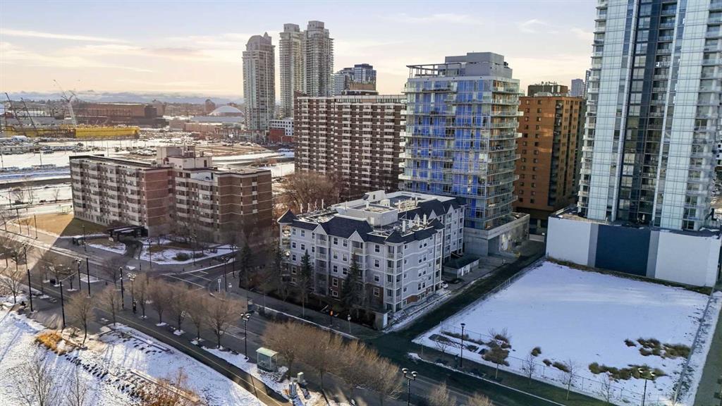 WELCOME - TO YOUR SPACIOUS CORNER UNIT in EAST VILLAGE - one of Calgary's most evolving communities. With 795 Square Feet, your new home in "RIVER TWIN" offers a noticeably more comfortable layout than many new builds. Both bedrooms are large enough to comfortably fit a KING-SIZED BED — making the layout ideal for roommates, guests, or a dedicated HOME OFFICE setup. The kitchen and bathroom have been FRESHLY UPDATED with new MATCHING QUARTZ COUNTERTOPS, creating a brighter, more cohesive feel throughout the OPEN-CONCEPT LIVING AND DINING AREA. HARD-SURFACE FLOORING THROUGHOUT (NO CARPET) adds durability and ease of maintenance, while IN-SUITE LAUNDRY + STORAGE UNIT (on your floor) enhances everyday livability. As a CORNER UNIT, the home benefits from ADDED PRIVACY (only 1 common wall) and NATURAL LIGHT. The BALCONY offers a quiet outdoor retreat — perfect for fresh air, container plants, or evening downtime. HEATED UNDERGROUND PARKING plus your CONDO FEES INCLUDE ALL UTILITIES — HEAT, WATER, GAS, AND ELECTRICITY. This RARE ALL-IN STRUCTURE provides exceptional cost certainty whether you're a home owner or investory seeking long-term profitability in this AIR BnB / Short Term Rental friendly building. The building itself is much LOWER DENSITY than you'll find in the area as it is only 5 floors and is primarily composed of TWO-BEDROOM RESIDENCES. The LOCATION has a lot to offer with the New CALGARY FLAMES ARENA and entertainment district opening in Fall of 2026, Fort Calgary park across the street, and you're just steps to the BOW RIVER PATHWAYS not to mention your conveinetly close proximity to DOWNTOWN. PET-FRIENDLY (WITH RESTRICTIONS), FLEXIBLE POSSESSION AVAILABLE, and has had the SAME OWNER FOR approx 15 YEARS — this is a WELL-ROUNDED OPPORTUNITY for buyers seeking SPACE, LOCATION, AND COST CERTAINTY in the downtown core. OPEN HOUSE this SUNDAY, Feb 1st from Noon - 2PM!