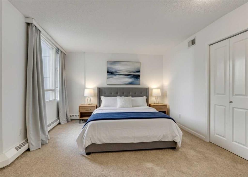 NEW PAINT & BRAND NEW CARPET!! 2 BED + 1 DEN + 2 BATH!! TITLED PARKING!! 1160+ SQFT!! 2 BALCONIES!! DEN!! Welcome to this spacious condo in the heart of Eau Claire that truly feels like a home. The main living area features a bright living room with access to a private balcony, a dedicated dining area with its own balcony, and a functional kitchen perfect for everyday living and entertaining. The primary bedroom offers a 4pc ensuite and great closet space, while the second bedroom is ideal for guests or family. A separate DEN makes working from home easy, plus there’s a 3pc main bath and in-suite laundry for added convenience. With TWO OUTDOOR SPACES, you get the best of indoor-outdoor living right in the city. Enjoy BRAND NEW CARPETS, fresh paint throughout, TITLED UNDERGROUND PARKING, and a STORAGE LOCKER. This well-managed building offers great amenities including a FITNESS CENTRE and a PARTY ROOM with kitchen. Located steps from Bow Valley Pathway, Prince’s Island Park, Peace Bridge, tennis courts, river pathways, and all the best of Eau Claire’s shops and cafes. SPACIOUS, MOVE-IN READY CONDO IN ONE OF DOWNTOWN CALGARY’S MOST DESIRABLE RIVERFRONT COMMUNITIES — DON’T MISS THIS ONE!!