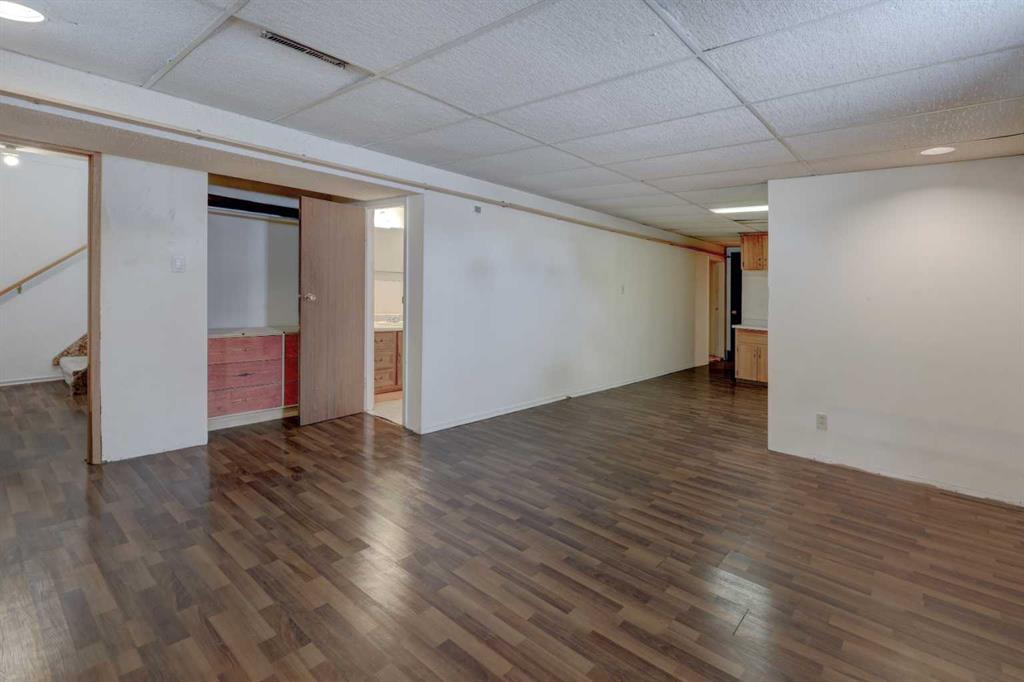 This is a unique property that offers a multitude of potential! Located on a quiet crescent, within walking distance to two elementary schools and the community center which offers a playground, hockey rinks, soccer and baseball fields. The outstanding feature this property has to offer is the massive detached garage which is the ultimate dream space for a mechanic, hobbyist or car enthusiast. This 24'11" x 44'11" garage is insulated and heated with it's own furnace room, includes 220 wiring, has pre plumbed compressor air lines, a work station, attic storage and a 3 piece bathroom! The bungalow style house is a traditional floor plan offering a living and dining room, off the kitchen with 3 bedrooms and a full renovated 4 piece bath down the hallway. The windows have been replaced through out this main level offering a substantial upgrade and the basement offers the potential of a separate suite with the split back entry, a roughed in kitchen and the potential of two bedrooms if the windows were changed out. There is additional outdoor paved tandem parking beside the garage, perfect for an RV or off street parking. The property has lovely curb appeal and is in an excellent location within the community!