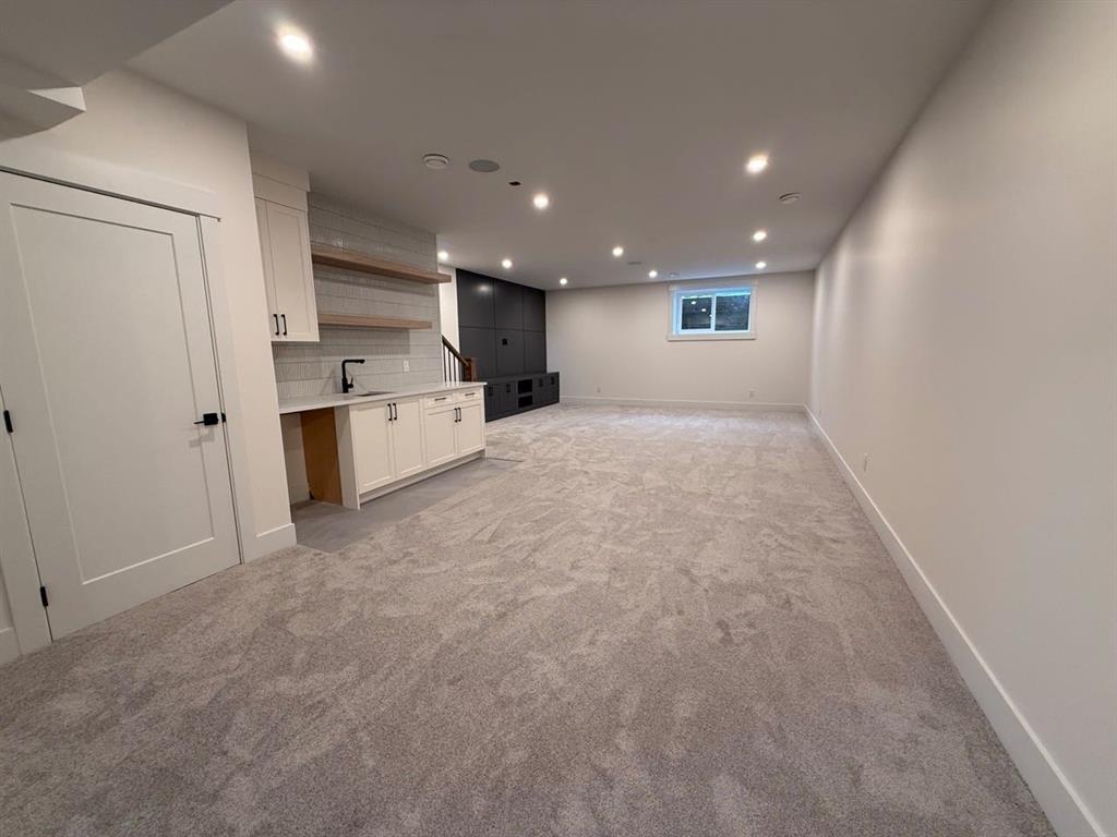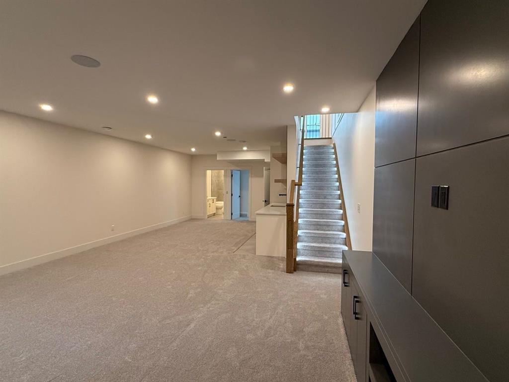 The lower level flexes effortlessly with family life—an expansive Rec room with custom built-in TV wall, a generous flex/rec area with a full wet bar, plus an additional bedroom and full bath, ideal for guests, teens, or extended family.