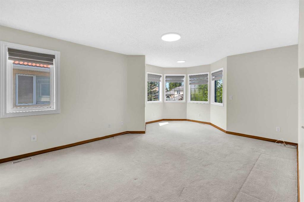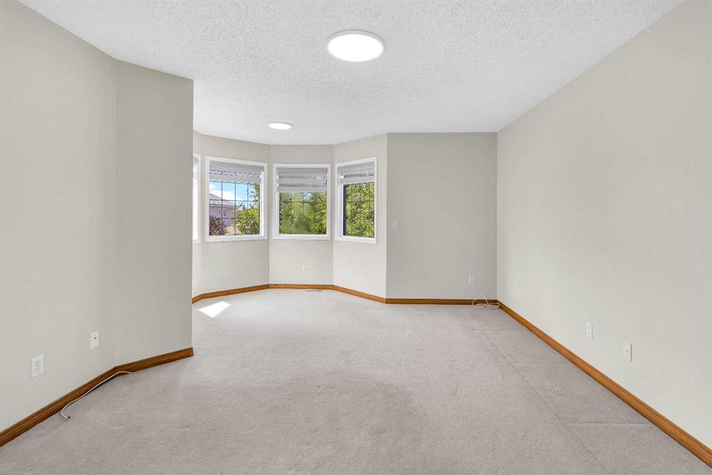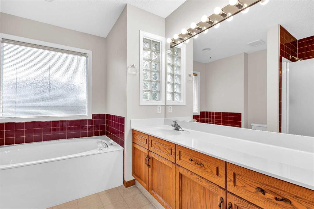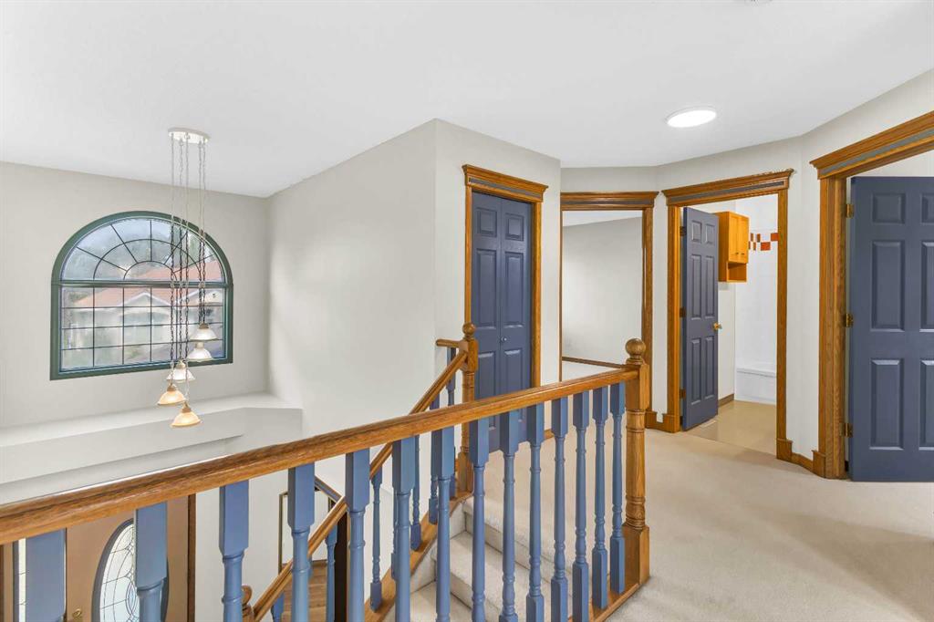 Welcome to Hamptons – where timeless charm meets family comfort. Tucked into a peaceful cul-de-sac and backing onto landscaped green space, this home offers over 3,000 sqft of total living area. As you step through the front door, the freshly painted main and upper floors invite you into a formal living and dining area, bathed in sunlight. Whether it's a family gathering in the bright breakfast nook or cozy evenings by the gas fireplace in the family room, the main level offers space to connect and unwind. The kitchen features stainless steel appliances, a walk-in pantry, and a brand new stove (2025)—perfect for everyday cooking or weekend hosting. Upstairs, you’ll find a spacious den, two generous bedrooms, and a large primary retreat complete with jetted tub, dual sinks, and walk-in closet. The bright basement includes a full bathroom, flexible rec room, and plenty of space for home gym, ping pong, or your next media setup. Notable upgrades include a concrete tile roof (2014), a Garage door (2017) and numerous window replacements (2020) to ensure peace of mind for years to come. Enjoy walking distance to top-ranked schools like Tom Baines & Sir Winston Churchill High, plus quick access to Stoney Trail, Costco, and local parks. This home blends warmth, functionality, and location—your next chapter begins in Hamptons.