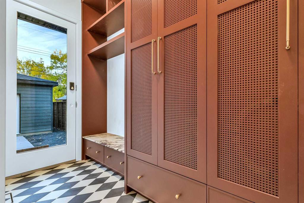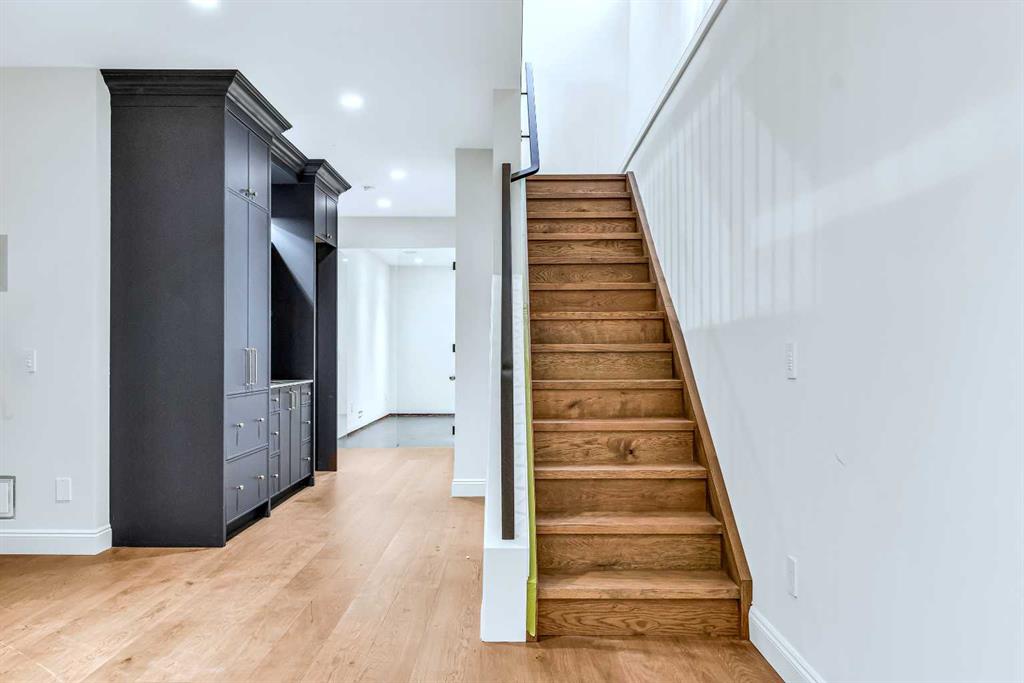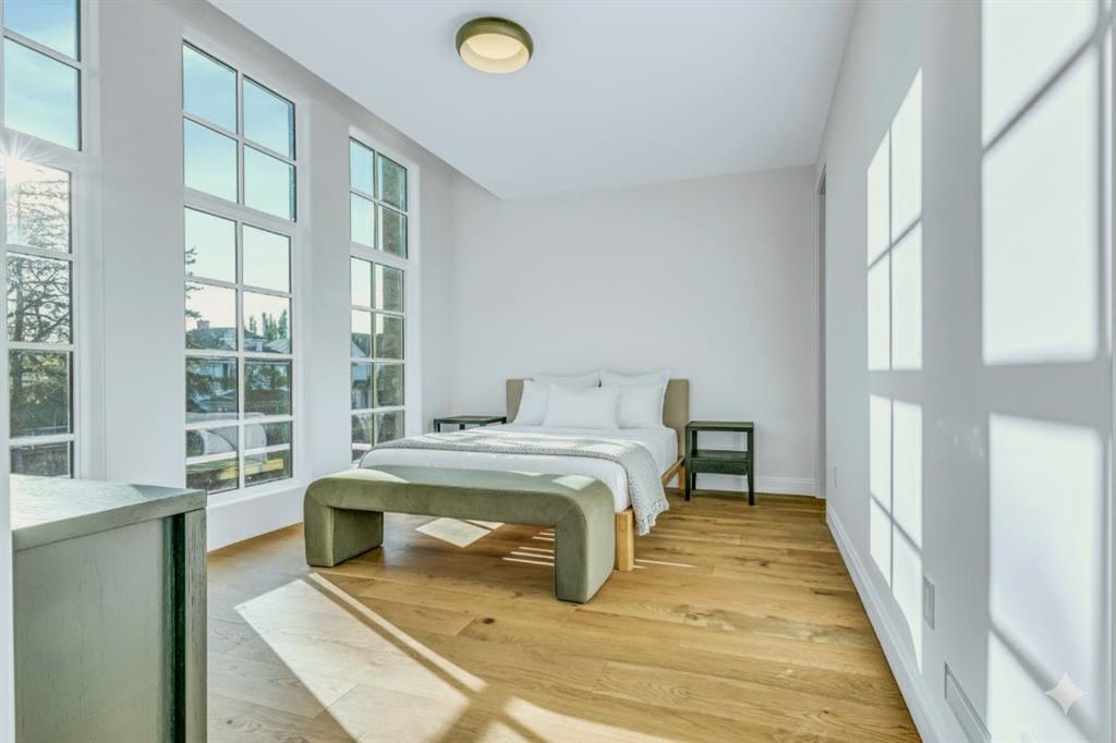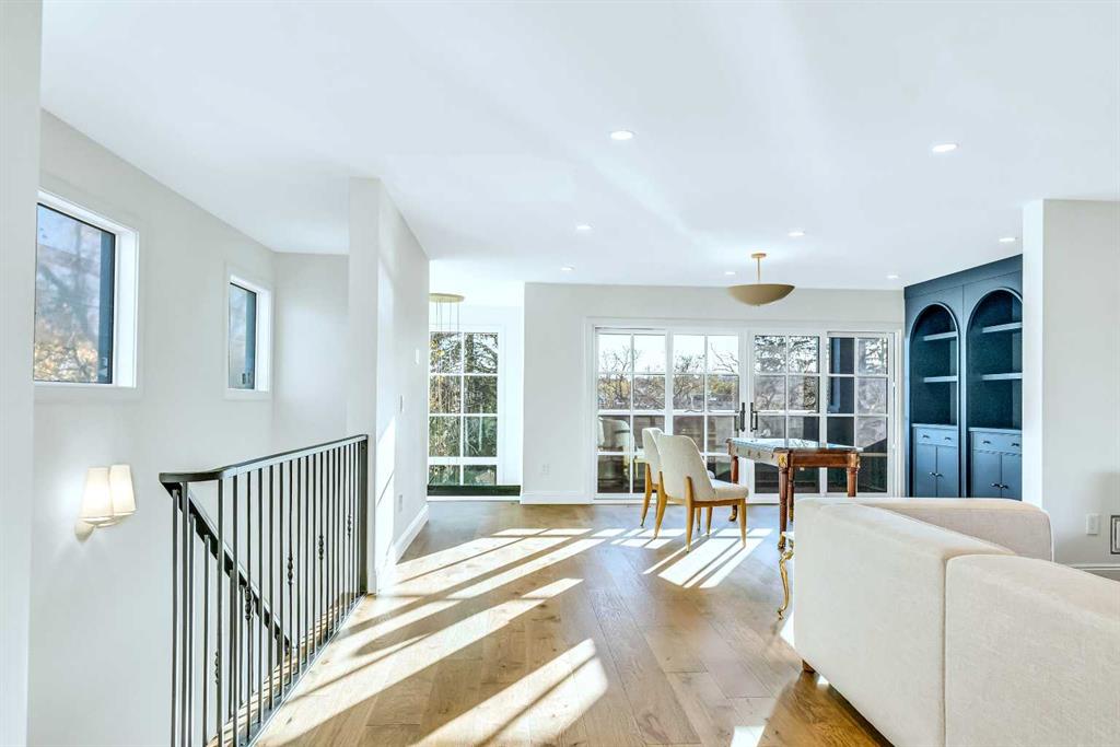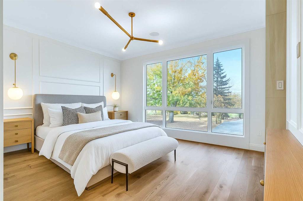 Situated on a 33-ft south-facing lot backing onto the Bow River, this home blends curb appeal with architectural presence — Large Lux windows, full-bed brick, cedar soffits, and an aged concrete patio with built-in planter. It’s equipped with an elevator and Control4 smart home automation, combining sophistication with modern convenience.
