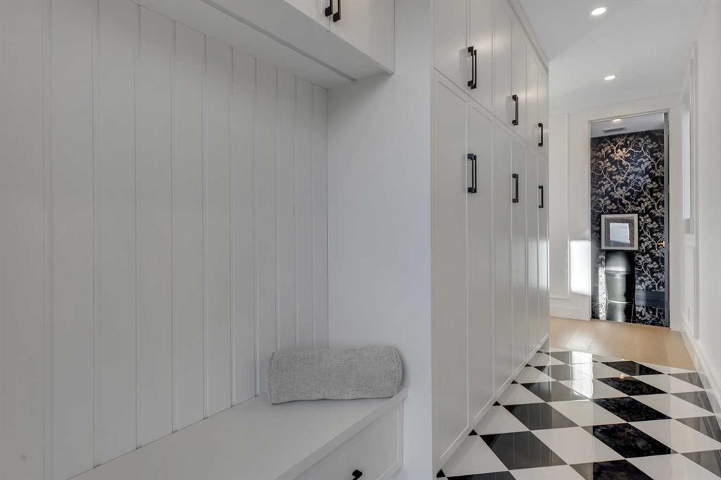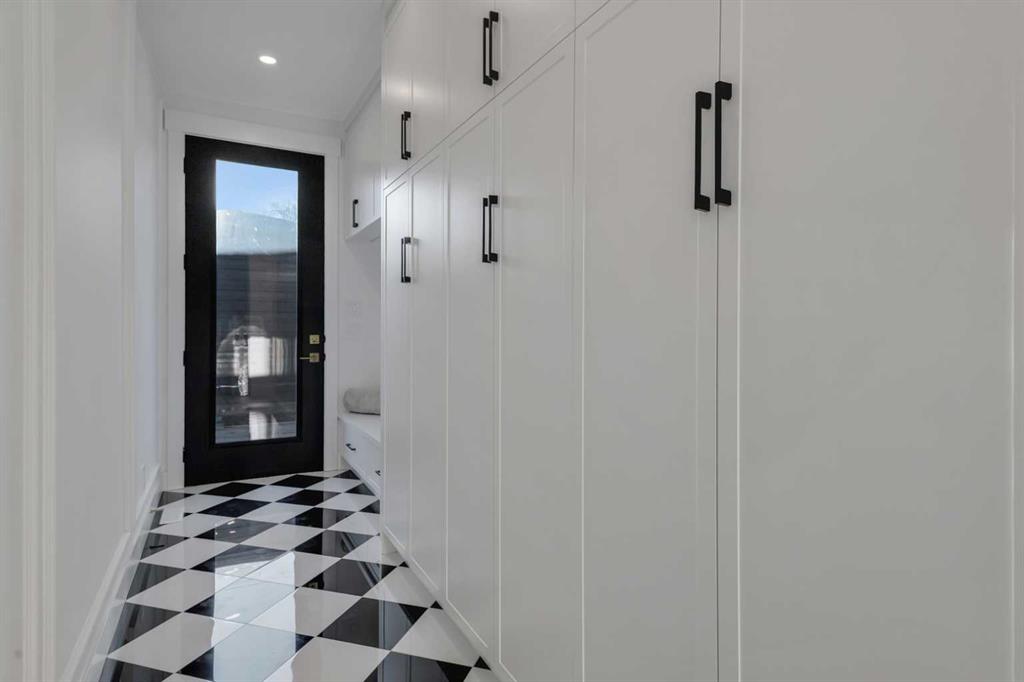 The main floor opens to a welcoming front entry finished with custom millwork and built in storage that provides subtle separation while maintaining an open flow. A dedicated front dining area is framed by oversized windows overlooking the tree lined street, creating a bright and inviting space for hosting and daily use. Carefully selected materials and cohesive detailing throughout the main level give the home a polished and timeless feel.
