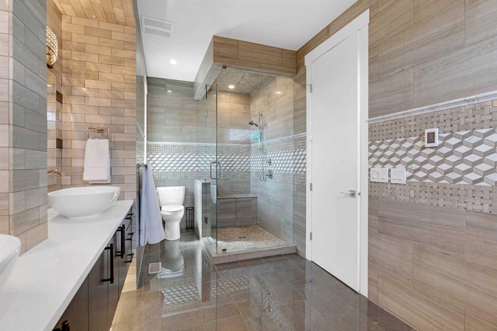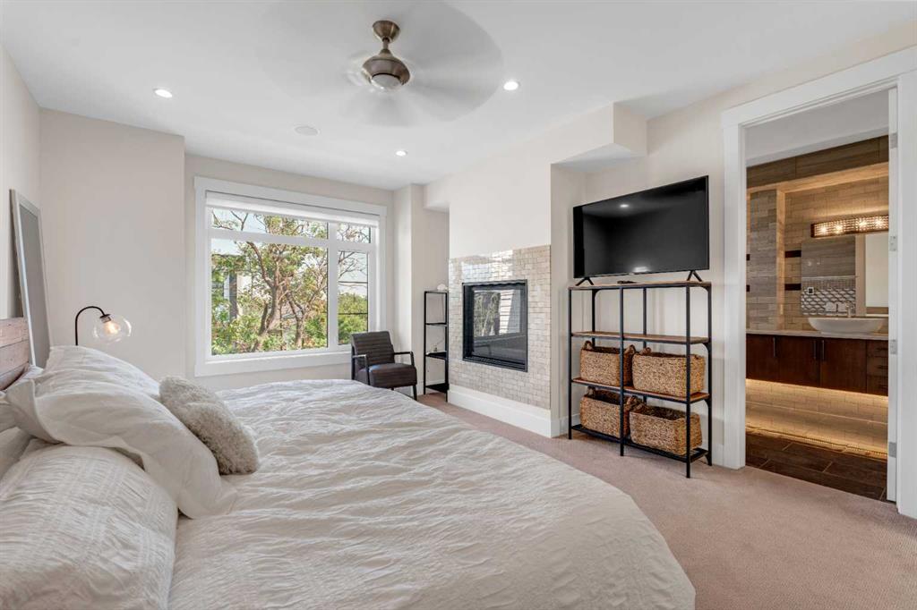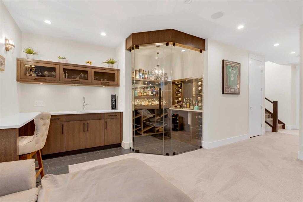 Welcome to 2635 29 Street SW. This exquisite custom home, spanning over 2,600 square feet of meticulously designed high-end living space, stands as a true masterpiece. A sprawling backyard and an expansive 3-CAR GARAGE elevate its uniqueness within its price range. As you step into the foyer, an aura of warmth and opulence envelops you, setting the tone for the grandeur that unfolds. The chef's dream designer kitchen boasts custom tile work, stainless steel appliances, ceiling-height cabinetry, and a charming breakfast nook, redefining culinary experiences. The living room boasts a captivating fireplace nestled amidst thoughtfully crafted built-ins, creating an inviting ambiance. Adding to the allure, the dining area boasts elegantly crafted ceiling beams that epitomize refined taste. Ascending to the upper level, you'll discover three generously sized bedrooms, each offering a haven of comfort and style. The primary suite redefines indulgence with its substantial walk-in closet and a spa-inspired ensuite, adorned with a double-sided fireplace for the ultimate relaxation. Venturing to the lower level, an entertainer's paradise awaits. An impeccable built-in bar, an inviting entertainment room, and a tastefully designed wine room combine seamlessly to cater to your hosting needs. An additional bedroom on this level, complete with its own bathroom, ensures privacy and comfort for guests. The immersive sound experience is woven throughout the home, courtesy of strategically placed built-in speakers. The vast yard extends an invitation to outdoor gatherings, featuring an enchanting fireplace and a deck that creates an idyllic setting for al fresco entertainment. In summary, this beautiful home has many carefully curated features, an expansive layout, air conditioning, a gas heater in the garage, and impeccable attention to detail combined to offer an unparalleled living experience that exceeds expectations.