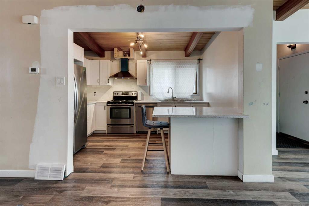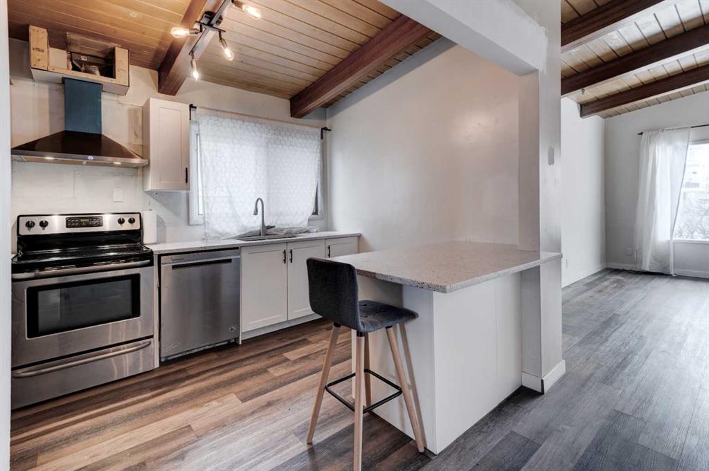 Solid duplex located in the established inner city SW community of Kingsland, offering a great opportunity for investors, renovators, or buyers looking to add value. This property is in need of a renovation, but it provides a strong foundation and excellent potential to suite the basement once you get the right approvals. Featuring 3 of 4 levels developed, the home has good bones including a concrete block party wall for added durability and sound separation, an open wood beam with vaulted ceilings that bring natural light into the main living space. Mechanical updates include a newer hot water tank and High Efficiency furnace. The layout offers flexibility, with a separate side entrance to the lower level where a large bedroom and 3-piece bathroom are already in place, presenting potential for future legal suite development (subject to approvals). The unfinished fourth level provides additional space for expansion. Outside, the private, fenced, south-facing backyard offers room to build a garage, along with existing off-street parking. Located in a convenient and well connected area close to amenities, transit, and major routes, this property presents a compelling opportunity for those looking to renovate, invest, or reposition a property in a desirable inner city location.