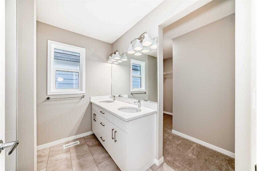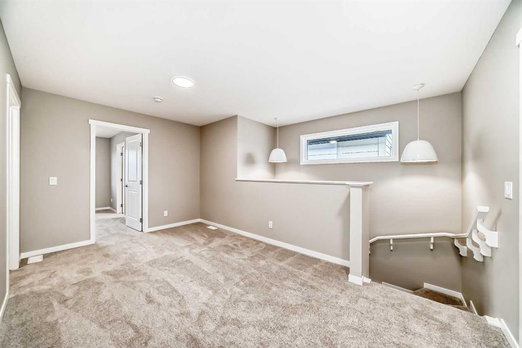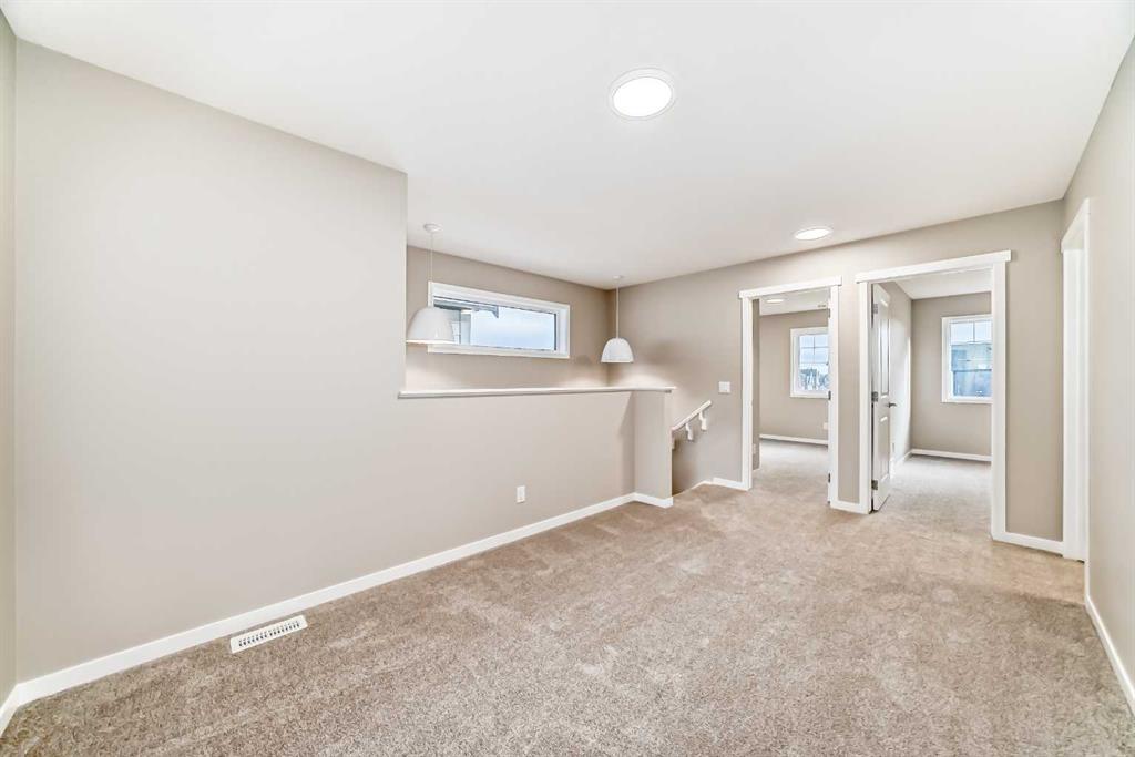 Meet the brand-new “Heath,” a fresh take on a beloved layout that blends smart design with everyday comfort. Step inside to a bright, open main floor finished in warm luxury vinyl plank, with a versatile front flex room that suits a home office, homework zone, or cozy reading spot. The rear of the home opens to an inviting living room and an oversized dining area—perfect for weeknight dinners and weekend gatherings alike. Anchoring the space, the chef’s kitchen showcases wood-grain cabinetry raised to the bulkhead, crisp white quartz counters, a classic subway tile backsplash that wraps the standalone hood fan, stainless steel appliances, and a large island that makes prep, snacks, and conversation effortless. A generous back window brings in natural light, and the practical rear entrance keeps daily comings and goings simple. Upstairs, a centrally located loft creates a true second living space and smart separation between the sleeping quarters. The spacious primary retreat features a walk-in closet and a spa-inspired 4-piece ensuite with dual sinks, while two additional bedrooms share a well-appointed 4-piece bath. The upper laundry room keeps chores convenient and out of sight. A side/secondary entrance adds flexibility for future possibilities such as a guest, in-law, or private living area (subject to city/municipal approvals and permitting). Outside, the landscaping is complete—front and back—so you can enjoy the space from day one. Expect finished sod, mulched side yards, and thoughtfully selected trees/shrubs in the front that complement the streetscape and elevate curb appeal. And the setting? You’re in Mahogany—Calgary’s four-season lake community—where life revolves around water, parks, and connection. Enjoy two residents-only beaches, the Beach Club, tennis and sport courts, winter skating, fishing, playgrounds, and more than 22 km of pathways and preserved wetlands. Stroll to the Village Market for cafés, restaurants, fitness, and daily essentials, with the South Health Campus and Seton Urban District just minutes away. From paddleboards to sunset walks, the Heath puts a resort-style lifestyle within easy reach.