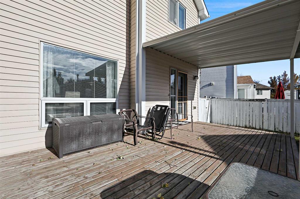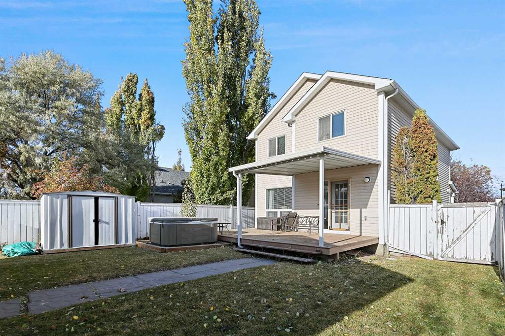 The main floor features new laminate flooring, a cozy gas fireplace in the living area, and a bright, open layout that’s perfect for family gatherings or quiet evenings in. The spacious kitchen and dining area flow seamlessly to your sunny south-facing backyard, where you’ll find a large deck with a gazebo, a hot tub for evening relaxation, a handy storage shed, and a beautifully sized yard — one of the larger lots in McKenzie Towne, ideal for playtime or entertaining.