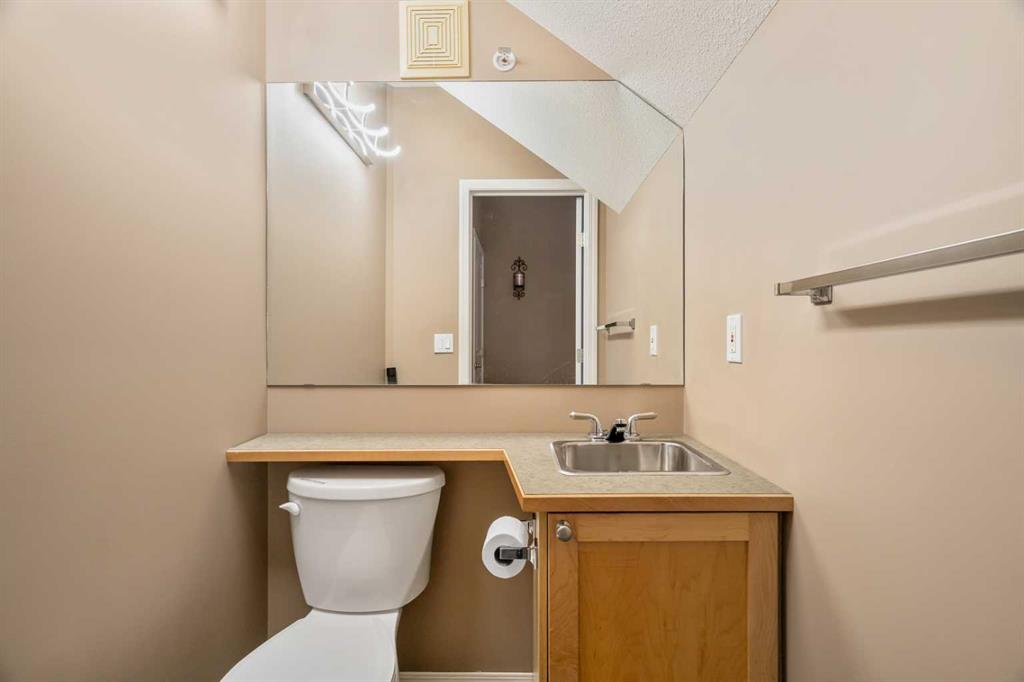 Welcome to this stunning 2-bedroom, 2-bathroom penthouse condo with a spacious loft, located in the highly sought-after lake community of Midnapore. Offering exclusive private lake access (HOA included in the condo fees), this home combines lifestyle and convenience in one of Calgary’s most desirable neighbourhoods. Step inside to an open-concept floor plan featuring a modern kitchen with an eat-up bar, a dining area, and a bright living room with vaulted ceilings and a cozy gas fireplace. Large west-facing windows flood the space with natural light, while the patio—complete with a BBQ gas line—is perfect for relaxing or entertaining. The primary suite offers a walk-in closet and a private ensuite, while the second bedroom and half bathroom provide comfort & convenience for family or guests. Upstairs, the versatile loft area makes a fantastic office, additional living space, or even a third bedroom.