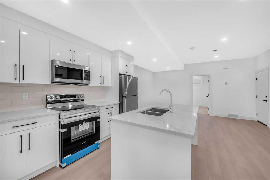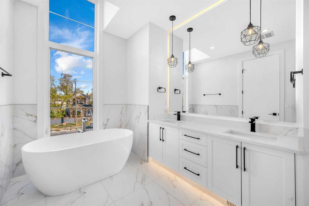 *VISIT MULTIMEDIA LINK FOR FULL DETAILS & FLOORPLANS!* IMMEDIATE POSSESSION AVAILABLE | 5 BEDROOOMS | 3.5 BATHROOMS| 10 FT MAIN FLOOR CEILING | 2 BED LEGAL SUITE | DOUBLE DETACH GARAGE. Welcome to 7617 Ogden Road, located in the historic community of Ogden this home enjoys easy access to Glenmore and Deerfoot Trails, excellent schools, Lynnwood Park, and nearby pathways along the Bow River. Ogden is perfect for nature lovers and golfers, and it is near the Inglewood Bird Sanctuary and Golf Course. Recently developed Quarry Park is only a 5-minute drive South with endless shopping and its own YMCA. The open-concept main floor with 10 ft ceiling features a chef’s inspired kitchen with ceiling-height custom cabinetry, a built in coffee station with extra storage & decorative shelves, a modern quartz backsplash, designer lighting and massive island with ample bar seating with waterfall edges. The spacious living room centres on a stunning electric fireplace and feature wall with a full-height tile and custom built-ins for added elegance. Finishing off this level, the large dining room offers a custom feature wall and 3 oversized windows, allowing lots of natural light into the home. Upstairs, the elegant primary suite features a soaring 14 ft vaulted ceiling, large windows, & a walk-in closet with ample storage. The spa-inspired ensuite is elegantly finished with tile floors, quartz countertops, dual undermount sinks, a stand-alone tub, and a stunning glass shower. Two additional bedrooms with built-in closets share a modern 4-piece bath, and a convenient laundry room with a quartz folding counter and additional storage space completes the upper floor. The 2 bedroom Legal basement suite has its own separate entrance, 9ft ceilings and separate laundry. The contemporary kitchen offers custom cabinetry, quartz countertops, and an island, while the open-concept living area makes this a desirable and functional space. Complete with separate laundry, a 4-piece bathroom, and two bedrooms. Enjoy your double car garage with extra space for storage and parking. Dual furnaces ensure comfort for both the main home and the Legal suite. Quick commutes to downtown and nearby amenities make this home ideal for those on the go. Situated in a highly accessible location, close to shopping, transit, and major highways, this property is perfect for attracting renters. Don’t miss your chance to make this incredible property your next home—contact your favorite Realtor today for a private showing!