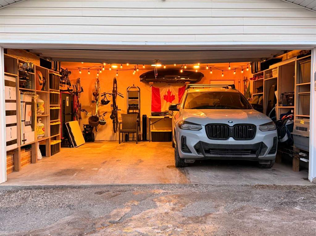 Enjoy long summer evenings in your private, West-facing courtyard-style, low maintenance backyard with string lights along the perimeter. The double garage boasts built in shelves for storage and more strings light for those summer Ping-Pong nights. in addition to all of the the outdoor living extras, your