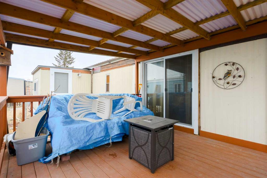 Affordable living without sharing walls! This 2 bedroom, 1 bath unit is located in a quiet street within the park. Your living room is the perfect spot to relax and enjoy the sunlight that floods in. The kitchen has plenty of storage with a large peninsula, complete with a lazy Susan in the corner cabinet, which makes it a breeze to cook in. While the adjacent dining room allows for a large table plus it has built in cabinets. The bathroom, has an easy access, low step oversized tub/shower combo. Both the primary and secondary bedrooms are large and bright. Plus there is a flex room that was once used as an office, and now is a large storage room but could also be used as a hobby room! With a large covered deck you're able to enjoy the outdoors regardless of the weather. The large yard is fully fenced and boosts beautiful grass in the summer- perfect for your children or pets! The clubhouse offers a modern fitness room, a community kitchen, a games room with 8-ball pool table, a playground, and an outdoor BBQ area- available for all residents to use! Calgary Village is a quiet, family-friendly community, close to schools and shopping. Opportunity awaits for you to make this home your own!