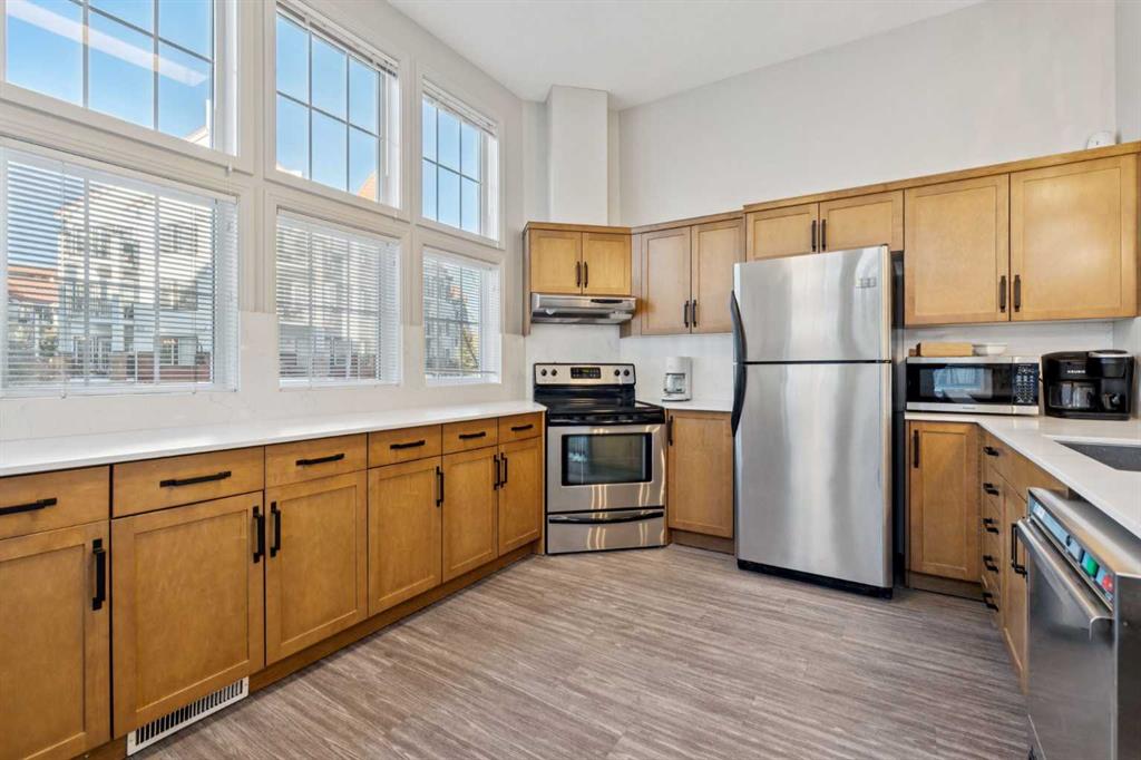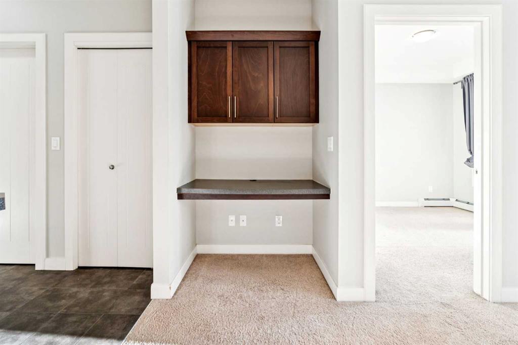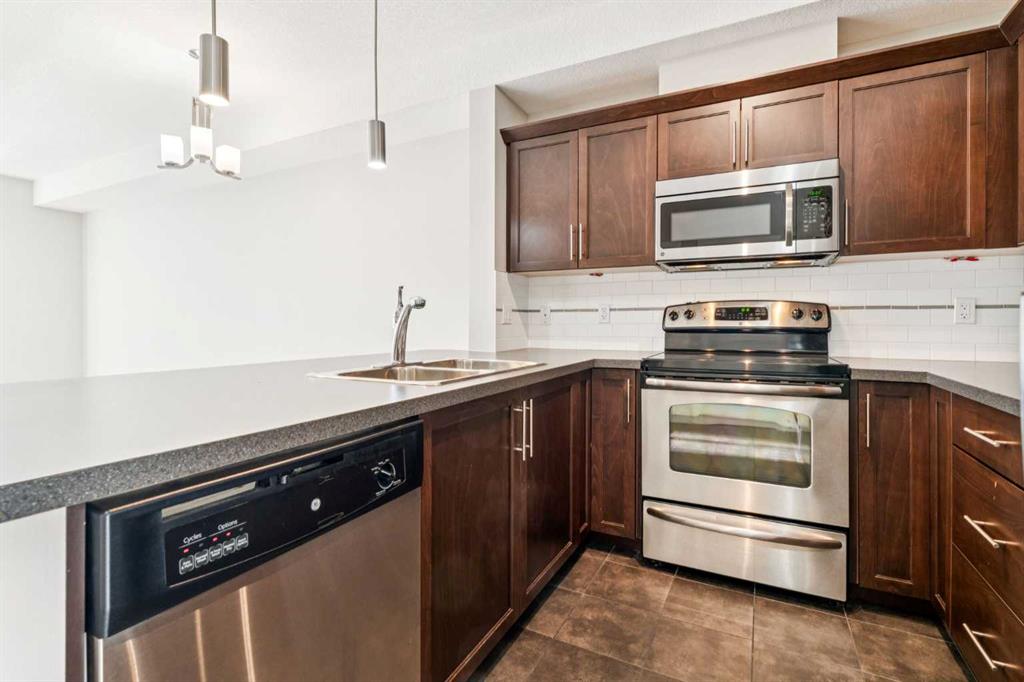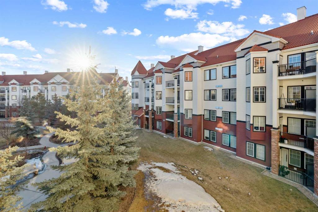 Welcome to Red Haus , located in the very desirable NW community of Royal Oak, situated close to amenities including shopping, restaurants, Rocky Ridge YMCA, C-Train Station, Schools & all within quick access to main thorough fares including Stoney Trail. This one bedroom, third floor, open concept unit looks out to the nicely landscaped courtyard which can be enjoyed from your convenient balcony with BBQ gas line. The kitchen features stainless steel appliances, plenty of cabinet & counter space as well as a functional eating bar & is open to the living room -perfect for entertaining. There is also a practical built-in desk, great for at home work station. The spacious bedroom has a good sized walk through closet which is adjacent to the 4 piece bathroom. The washer/dryer unit is off the bathroom. Amenities in this complex are located in the central Club House building & features a fitness centre, meeting room with kitchen & patio area. Included with this condo is a titled underground parking space & storage locker( Room 20-1 in parkade). There is also bike storage & visitor parking. What a great place to call your own in this well-managed complex!