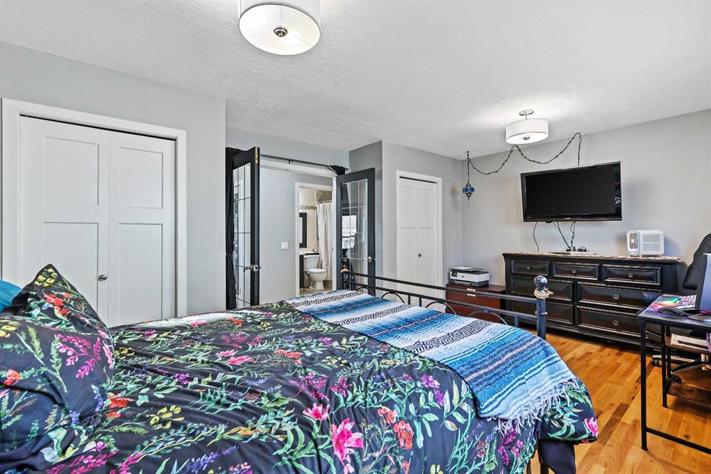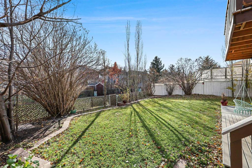 Welcome home! This inviting bi-level walkout home combines warmth, style, and thoughtful upgrades and nicely nestled on a huge treed lot with direct access to peaceful green space right out your back door! The open-concept main level features soaring ceilings that fill the living and dining areas with natural light and the beauty of real hardwood floors add warmth and timeless charm throughout. The updated kitchen showcases maple cabinetry, granite countertops, and brand-new stainless steel appliances, offering both beauty and functionality. Two spacious bedrooms on the main level (easily converted back to three) plus two full bathrooms provide flexibility and comfort for family or guests. The bright walkout lower level features in-floor heating, wide-plank luxury vinyl flooring, a large recreation room with cozy gas fireplace, a third bedroom, a den, laundry and a stylish 3-piece bathroom — ideal for additional living space, guests, or a home office. Step outside to enjoy a rubberized exterior deck, permanent exterior decorative lighting, large shed and a sunny south-facing yard with landscaped grounds accented by stonework and Rundle Rock detailing. Major features include newer shingles + leaf filter system, updated windows, furnaces, HWT and water softener …. all providing peace of mind and lasting value. An oversized garage completes this exceptional property. Backing onto miles of walking paths and open space, this home offers the perfect blend of comfort, quality, and a location that is close to everything that matters.