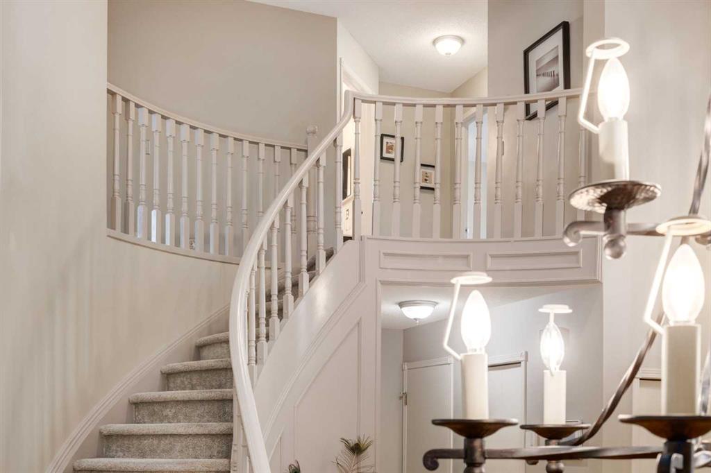 Located in the exclusive area of Sienna Hills Estates and within the community of Signal Hill on Calgary’s desirable ‘West Side’, this incredible family home offers four bedrooms, four bathrooms, a double attached garage and a fully finished walk-out basement. Gigantic mature trees and landscaping create a welcoming curb appeal while providing maximum privacy from neighboring homes. Upon entering, you are welcomed by soaring vaulted ceilings, a ‘showpiece’ curved central staircase and formal living and dining room spaces. The well-appointed kitchen boasts stainless steel appliances, including a new dishwasher and hood vent fan, dove grey cabinets, a central granite island and a cozy breakfast nook set into a bay window. The sunken family room is centered around a wood-burning fireplace flanked by custom built-ins and a coordinating mantle. The upper level is adorned with new carpet and offers two large children’s bedrooms with a full bathroom. The primary suite boasts plenty of space for a king-sized furniture set, a city skyline view, a spacious walk-in closet and a luxurious ensuite with dual vanities, a glass shower and a jetted corner tub. The lower-level walk-out includes a fourth bedroom with a fabulous luxury office, a full bathroom, a games room with a wet bar and a cozy family room. Enjoy the outdoors on the backyard covered patio, the main floor balcony or the private balcony off the primary suite. Located within walking distance of some of Calgary’s most desirable schools, restaurants, shops and professional facilities and within a short drive to the downtown core, this well-established neighborhood is the ideal place to raise a family.