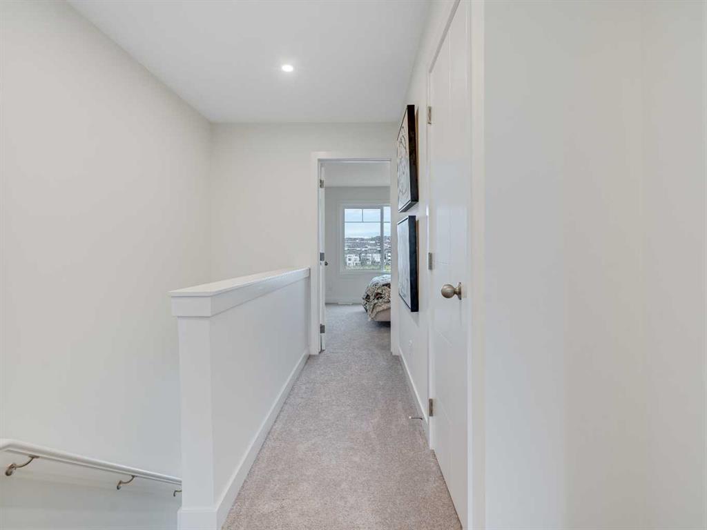 *First Time Buyers save 5% off listing price!* IMMEDIATE OCCUPANCY AVAILABLE –Welcome to the Juniper Townhomes in prestigious Springbank Hill/Aspen. This 2-bedroom townhome offers a sophisticated design with an emphasis on natural light and functional space. The ground level features a private yet bright den/home office with a large window and closet, a convenient 2-piece powder room, and direct access to the oversized single attached garage (plus additional driveway parking). The main floor boasts an expansive open-concept layout with 9' ceilings and large windows. A modern chef-inspired kitchen is finished with quartz countertops, a breakfast bar, and professional-grade appliances. Luxury Vinyl Plank throughout! Adjacent to the dining area, large sliding glass doors lead to a full-sized balcony. Upstairs, the primary suite includes a double-access closet and a private ensuite with a glass-enclosed stand-up shower. An additional large bedroom and a second full 4-piece bathroom, as well as upper-floor laundry complete the top level. Perfectly positioned for a quick commute with direct access to Stoney Trail and 17th Ave, with LRT just a short walk away and just across the road from the premium shopping and dining at Aspen Landing. Move-in ready and built for modern living.