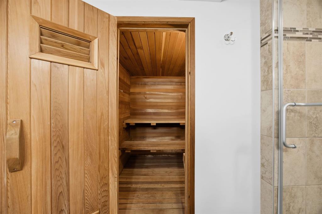 Downstairs, the lower level expands the living space in a meaningful way. Engineered hardwood runs throughout a large recreation area well suited for movie nights, watching the game, or entertaining family and friends. A bedroom and full bathroom offer flexibility for guests, teens, or extended family, while the cedar sauna adds a quiet place to unwind. A spacious utility room with built in shelving and counter space provides excellent storage and workspace.