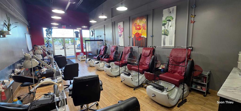 This 1,200 sq. ft. nail salon exudes elegance and professionalism with its high-class, modern setup that is meticulously clean and maintained. The space is thoughtfully designed with 5 spacious nail stations and 5 luxurious spa chairs. Additionally, two private rooms offer the potential for expanded services such as facials, waxing, or massage therapy, providing additional revenue streams.