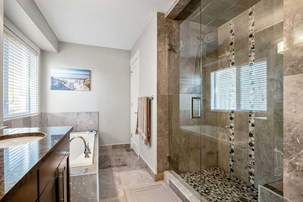 ** OPEN HOUSE Saturday Oct 18 1-3PM**Tucked in one of the most sought-after locations in Chestermere, this stunning two-storey walkout backs directly onto the tranquil Rainbow Falls green space and creek-side pathway. Step outside your back gate to enjoy peaceful walks along the water, surrounded by mature trees and lush landscaping — a true outdoor retreat right at home. Inside, this fully finished residence impresses with thoughtful updates and high-end finishes throughout. The reimagined Chef’s Kitchen now features brand-new stainless steel appliances, elegant granite countertops, custom maple cabinetry with soft-close drawers and under-cabinet lighting, plus a convenient walk-through pantry connecting to the mudroom. Whether preparing an intimate meal or hosting guests, this kitchen delivers both beauty and functionality. Soaring west-facing windows flood the main floor with natural light, framing picturesque views of the creek and park beyond. The inviting great room centers around a full-height stone fireplace — perfect for cozy evenings with family or friends. Upstairs; flowing new carpet, the spacious primary suite provides a true retreat, complete with a spa-inspired 5-piece ensuite featuring heated marble floors, a jetted marble-wrapped tub, dual vanities, and his-and-hers walk-in closets. The walkout lower level is beautifully designed with versatility in mind — featuring an impressive wet bar, built-in Murphy bed, custom wine room, in-ceiling audio, and a sleek 4-piece bath with heated floors and steam shower. Ideal as a guest suite or entertainment space, it’s fully equipped with separate laundry and security systems. Outdoors, the private fenced yard offers multiple gathering spaces — a large deck for summer dining, a cozy fire pit area, and a concrete patio overlooking the natural green space and gently flowing creek. This home truly combines luxury living with the serenity of nature — an exceptional balance of indoor comfort and outdoor beauty.