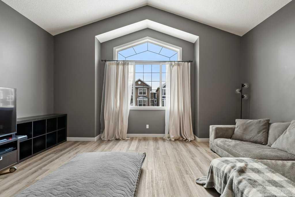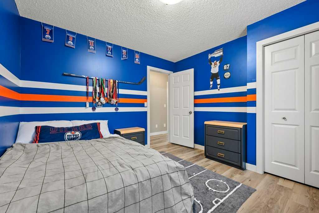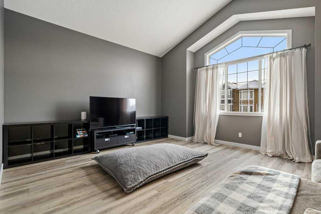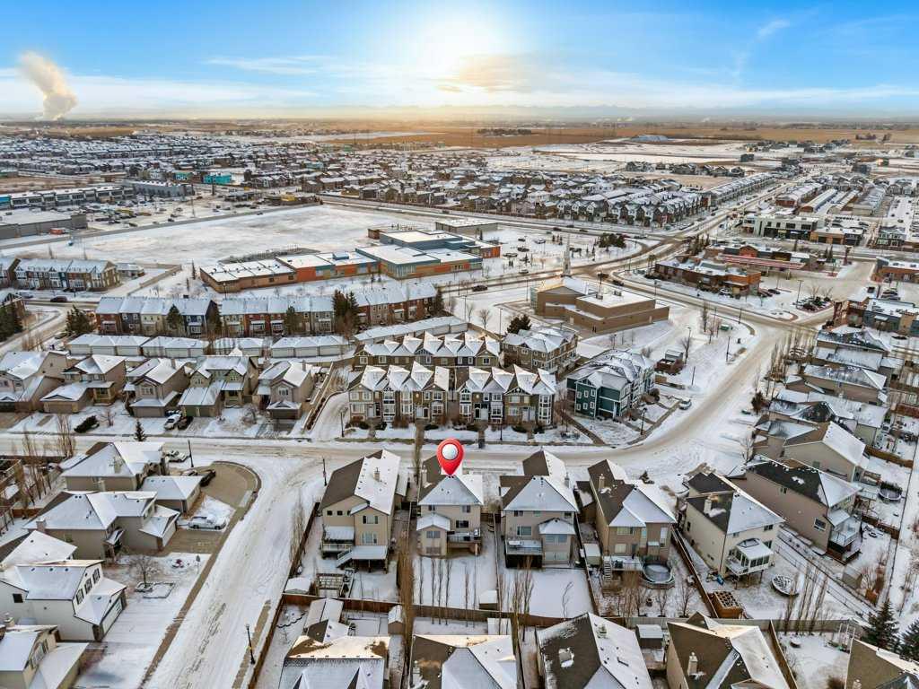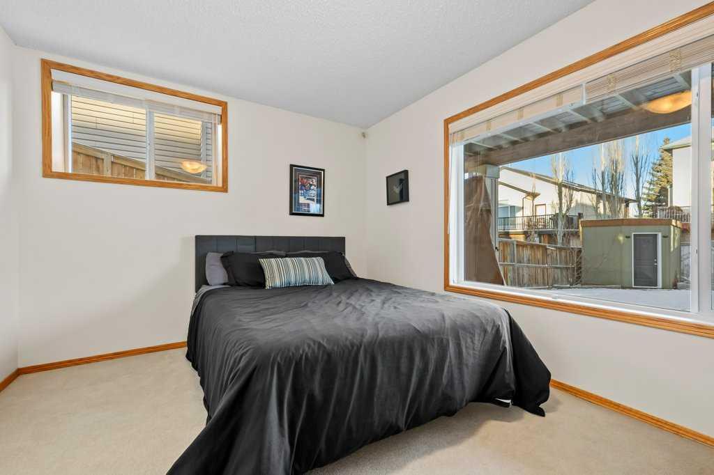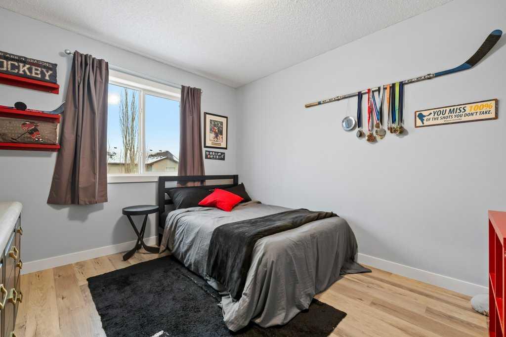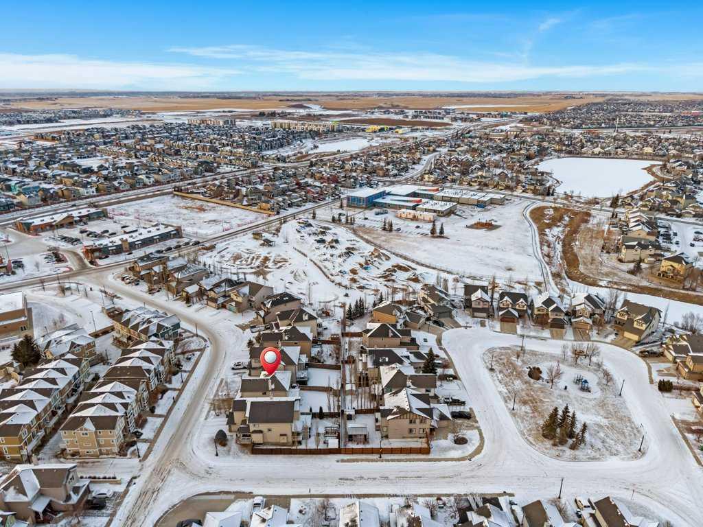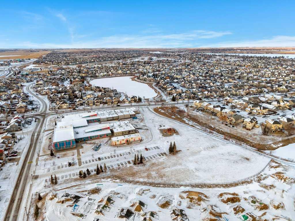 Perfectly situated in a family-friendly location, this beautifully updated home offers the ideal balance of walkability, lifestyle, & thoughtful design. Just steps from Our Lady of Wisdom School and Rainbow Creek Elementary, with nearby commercial amenities close at hand, residents will also enjoy easy access to a nearby bike park & scenic canal pathways. Quick access to Lakeside Golf Greens, Chestermere Lake, & Chestermere Lake Middle School further enhances the appeal of this exceptional location. The main floor welcomes you with fresh vinyl plank flooring, neutral paint tones, & the comfort of central air conditioning. Natural light flows through vinyl windows, while the layout has been carefully curated for both function & style. Direct access from the double attached garage leads into a well-designed mudroom & laundry area finished with hex tile flooring, added cabinetry & raw wood and metal shelving that adds character & warmth. A chic two-piece bathroom completes this level, featuring a counter-height standalone vanity & designer wallpaper. The lifestyle room invites relaxation with a gas fireplace framed by a tiled surround, creating a cozy focal point for everyday living. The heart of the home is the stunning kitchen, designed & renovated by Bjornson Design. White and grey cabinetry with soft-close mechanics, dovetail inlays, extended-height uppers, & a tiled backsplash set a timeless tone, while thoughtful details such as a garbage pull-out, built-in wine rack, beverage fridge, floating shelves, & premium built-in appliances elevate both form & function. The adjoining dining area is highlighted by a vaulted ceiling and opens through a garden door onto the deck, overlooking the the massive backyard & creating a seamless indoor-outdoor connection. Upstairs, vinyl plank flooring continues through a well-planned split-bedroom design. A front bonus room with a vaulted ceiling provides flexible space for a family room, office, or play area. Two additional bedrooms are privately positioned toward the back & side of the home, while the main four-piece bathroom offers a storage vanity, tub surround, & added tile accents. The primary bedroom is a peaceful retreat with backyard views, generous space for a king-size bed, & a walk-in closet. The renovated ensuite showcases a spa-inspired design with a water closet, soaker tub with tiled skirting, counter-height storage vanity in classic white cabinetry with Scandinavian-style countertop, an upper vessel sink, & a full-size stand-up shower accented with tile. The developed walkout basement, expands the living space with 9-foot ceilings, plush carpeting, & a large fourth bedroom. A three-piece bathroom with a storage vanity & corner shower adds convenience, while the recreation room features a second garden door that walks out to a lower concrete patio. Outside, the fully fenced walkout yard is fenced & framed by mature trees, garden beds & includes a corner storage shed for your convenience