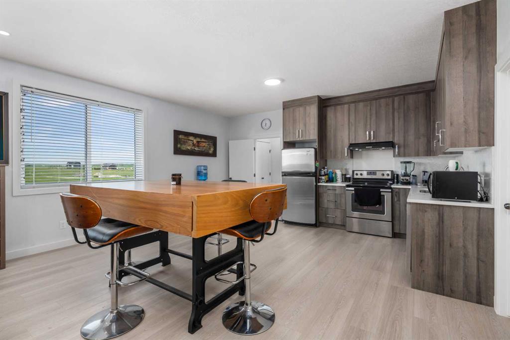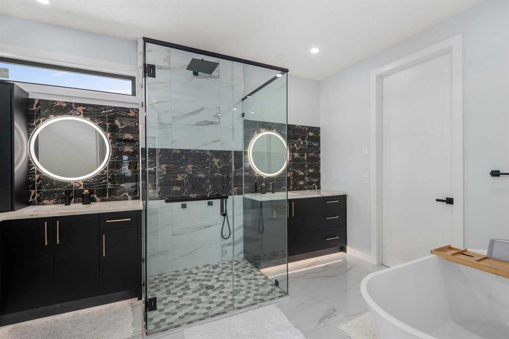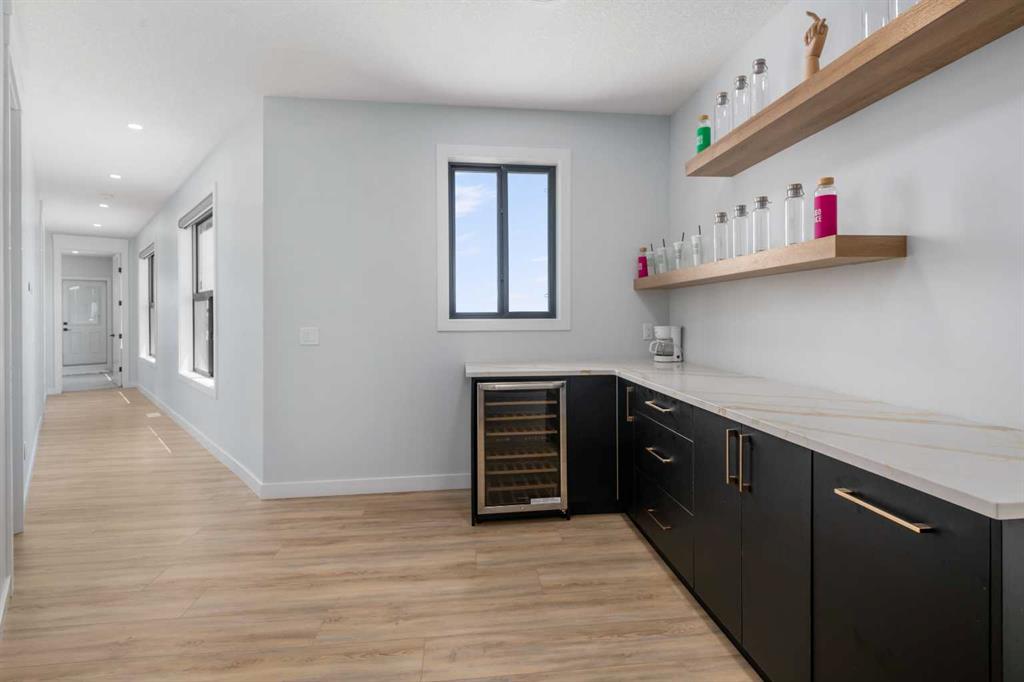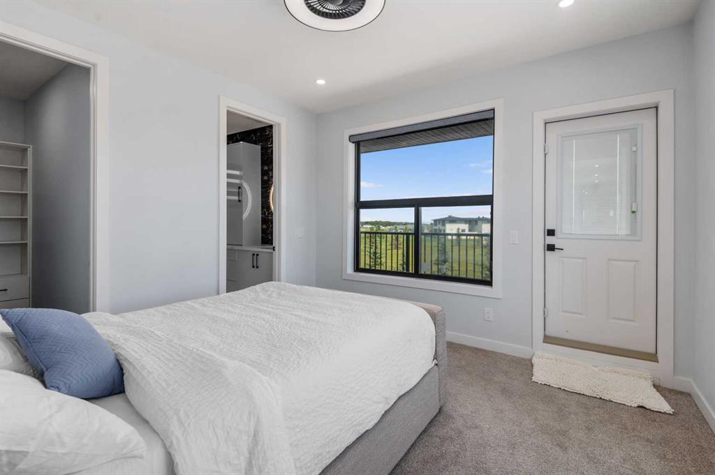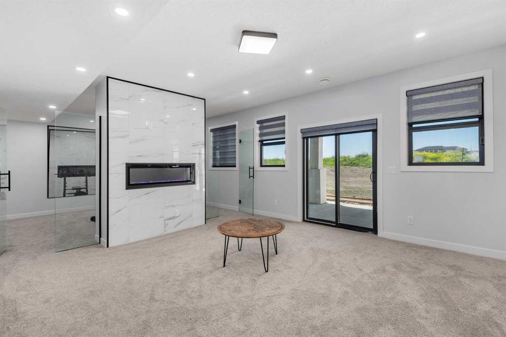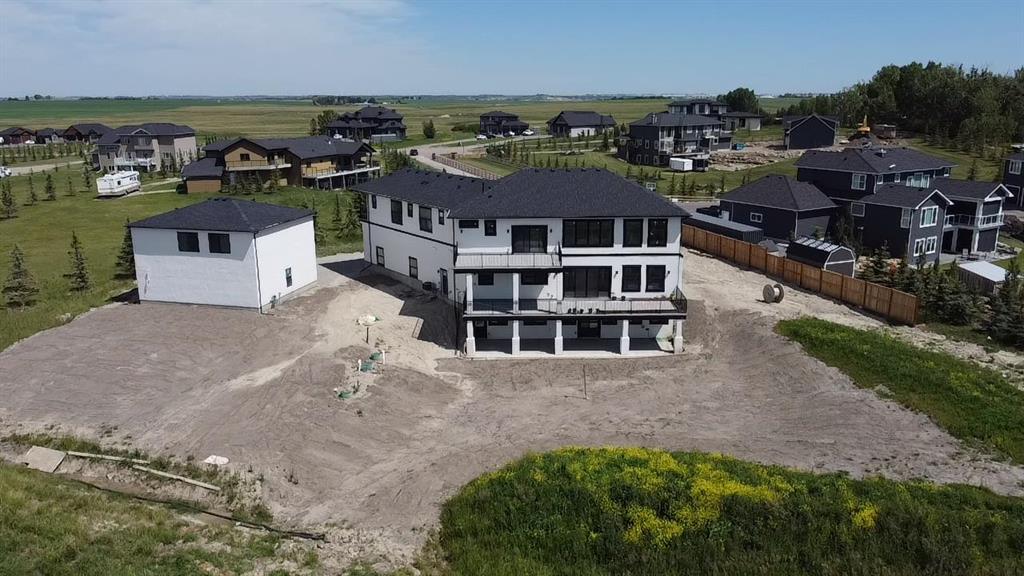 Stunning modern estate home on 2 acres, offering 4040 sq ft up, another 1686 sq ft down, a 4-car attached garage + an oversized detached double garage (36x31) w/a fully legal suite above (additional 1113 sq ft) + illegal suite in the basement off to one side. The legal suite above the garage features 2 bedrooms, a full bathroom w/laundry, a family room, kitchen, & is currently rented for $2,000/month + 40% of all utilities (the tenant would love to stay). The front entry of the main house is bright & open, w/an abundance of windows throughout. To one side, a spacious living room centers around an extra-wide electric fireplace, while the opposite side hosts a main floor bedroom w/a full ensuite featuring a walk-in shower. A discreetly tucked-away 2-piece bathroom serves the main floor & is adjacent to the rear family room w/tall ceilings & gorgeous ceiling detail, which includes a 2nd electric fireplace & overlooks the backyard. The dining area opens to a large west-facing deck, perfect for evening gatherings. The expansive kitchen is beautifully finished w/quartz counters, a huge island w/drawers on both sides, a side-by-side fridge/freezer, built-in oven & microwave, induction cooktop, & beverage fridge + desk area. Adjacent is a fully equipped spice kitchen w/gas stove, dishwasher, microwave & full-height cabinetry, along w/a pantry that also offers full-height storage & access to the 4 car attached garage is just off the back mudroom also w/cabinetry. An open riser staircase w/glass insert railing leads to 4 bedrooms & a spacious bonus room w/views overlooking the main level. The primary bedroom has mountain views, a private balcony, electric fireplace, luxurious 5-piece ensuite, & a generous walk-in closet. 3 additional upstairs bedrooms each have walk-in closets & private ensuites—two 3-piece baths & one 4-piece with its own private deck. A built-in hallway nook adds functional charm w/a beverage fridge, shelving & cabinetry, while the laundry room includes a washer, dryer & sink. The fully finished walkout basement offers exceptional living & entertaining space, including a theatre room w/screen, wet bar w/built-ins, a fitness room enclosed behind glass doors, a family room w/slider doors to the yard, 2 additional electric fireplaces & a stylish 4-piece bathroom. On the (illegal) suite side of the basement is another door to the yard, a kitchen (not fully legal—stove not permitted but all other permits are in place), a family room, bedroom w/walk-in closet, 4-piece bathroom, & laundry. With its versatile layout, luxurious finishes & income-generating potential, this property is a rare find—just a few short minutes from Calgary. Click on video & 3D Walk Through for more info.