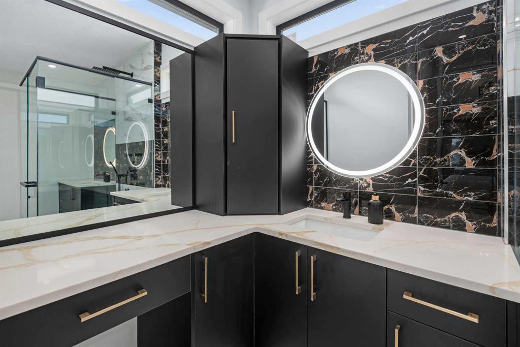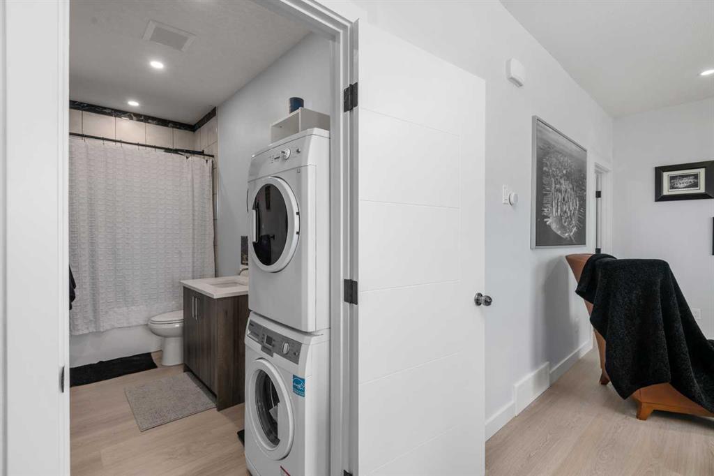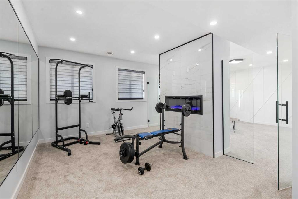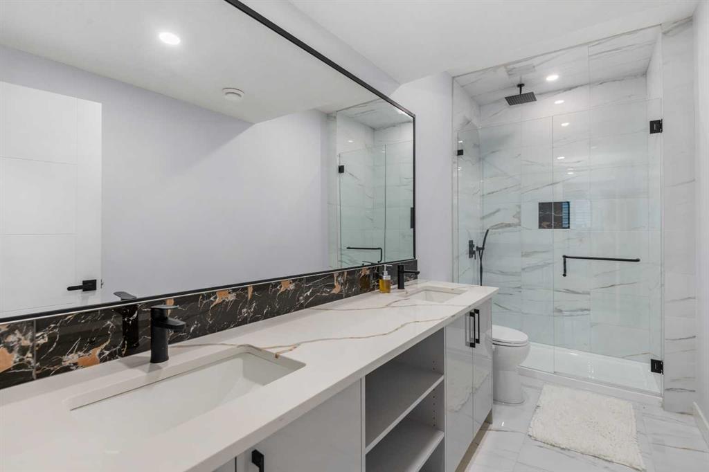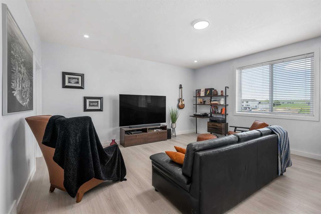 Stunning modern estate home on 2 acres, offering 4040 sq ft up, another 1686 sq ft down, a 4-car attached garage + an oversized detached double garage (36x31) w/a fully legal suite above (additional 1113 sq ft) + illegal suite in the basement off to one side. The legal suite above the garage features 2 bedrooms, a full bathroom w/laundry, a family room, kitchen, & is currently rented for $2,000/month + 40% of all utilities (the tenant would love to stay). The front entry of the main house is bright & open, w/an abundance of windows throughout. To one side, a spacious living room centers around an extra-wide electric fireplace, while the opposite side hosts a main floor bedroom w/a full ensuite featuring a walk-in shower. A discreetly tucked-away 2-piece bathroom serves the main floor & is adjacent to the rear family room w/tall ceilings & gorgeous ceiling detail, which includes a 2nd electric fireplace & overlooks the backyard. The dining area opens to a large west-facing deck, perfect for evening gatherings. The expansive kitchen is beautifully finished w/quartz counters, a huge island w/drawers on both sides, a side-by-side fridge/freezer, built-in oven & microwave, induction cooktop, & beverage fridge + desk area. Adjacent is a fully equipped spice kitchen w/gas stove, dishwasher, microwave & full-height cabinetry, along w/a pantry that also offers full-height storage & access to the 4 car attached garage is just off the back mudroom also w/cabinetry. An open riser staircase w/glass insert railing leads to 4 bedrooms & a spacious bonus room w/views overlooking the main level. The primary bedroom has mountain views, a private balcony, electric fireplace, luxurious 5-piece ensuite, & a generous walk-in closet. 3 additional upstairs bedrooms each have walk-in closets & private ensuites—two 3-piece baths & one 4-piece with its own private deck. A built-in hallway nook adds functional charm w/a beverage fridge, shelving & cabinetry, while the laundry room includes a washer, dryer & sink. The fully finished walkout basement offers exceptional living & entertaining space, including a theatre room w/screen, wet bar w/built-ins, a fitness room enclosed behind glass doors, a family room w/slider doors to the yard, 2 additional electric fireplaces & a stylish 4-piece bathroom. On the (illegal) suite side of the basement is another door to the yard, a kitchen (not fully legal—stove not permitted but all other permits are in place), a family room, bedroom w/walk-in closet, 4-piece bathroom, & laundry. With its versatile layout, luxurious finishes & income-generating potential, this property is a rare find—just a few short minutes from Calgary. Click on video & 3D Walk Through for more info.