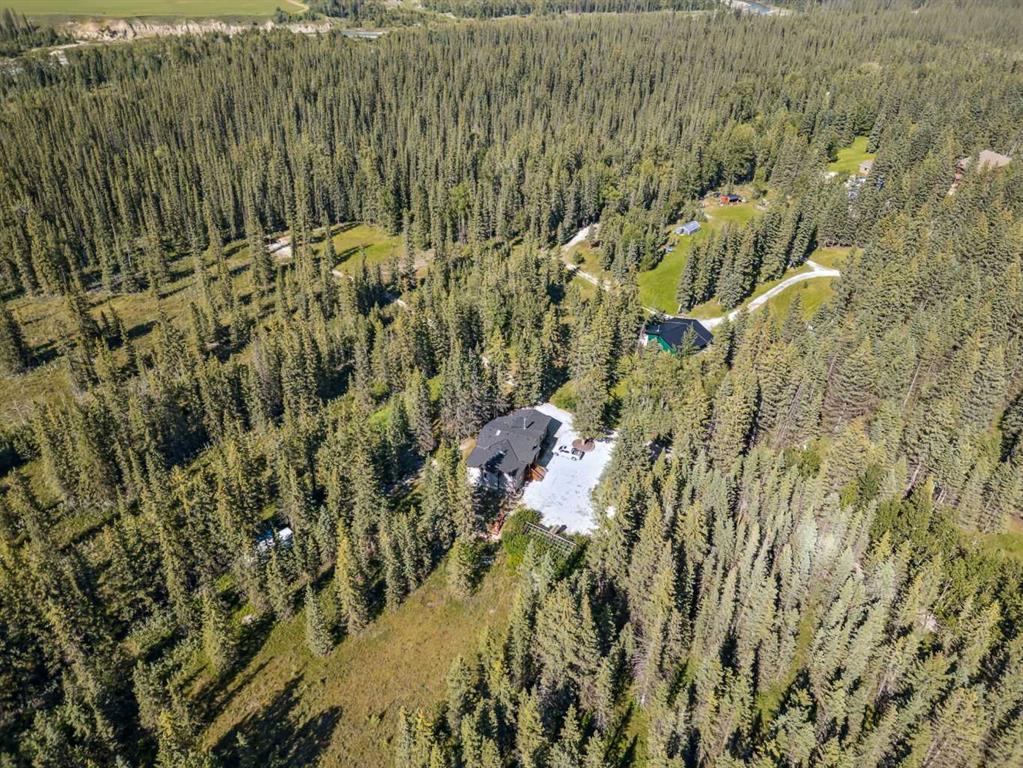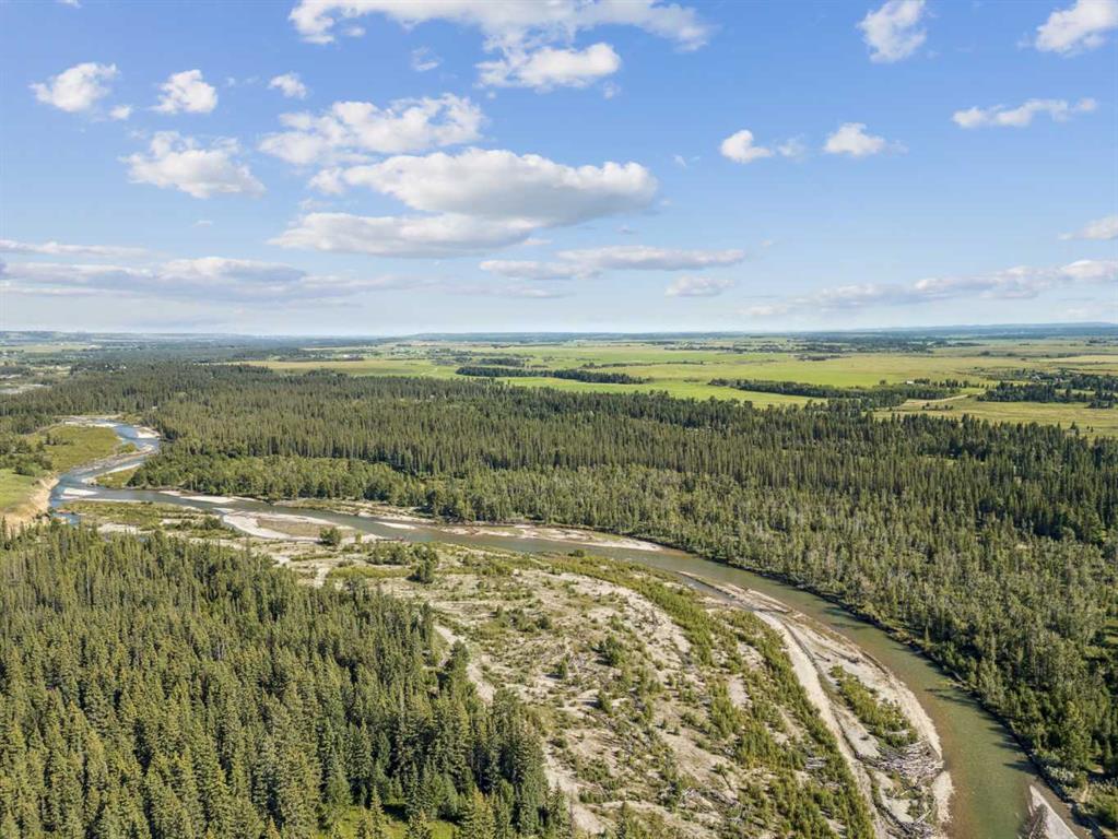 Welcome to your countryside DREAM HOUSE nestled on 19.99 acres of pristine, tree-covered land with only a couple of years old custom-built bungalow(2023) offers a rare blend of convenience, comfort, modern elegance and timeless country charm. Here, the days begin with the gentle sounds of nature, wake up by birds singing, the soft shimmer of sunlight through the treetops, and enjoy morning walk with coffee in your hand up to the little stream, and having brunch on your private deck surrounded by trees. Afternoon, focus on your habit in a workshop, and then walk even further cross your own handcrafted bridge and wander to the Elbow River, where the beauty of Alberta unfolds in every season. Invite your guests to a BBQ festivity under a wooden gazebo and sit around a fire pit for stargazing. 1,807 sqft residence is thoughtfully designed for both comfort and style. Open-concept with 12-ft ceilings, anchored by a wood-burning fireplace, the chef’s kitchen showcases custom wooden countertop, ample cabinetry, and a skylight to capture the midday sun. Expansive windows bring in abundance of natural light all day long, and the engineered hardwood floors enhance the country living. The primary bedroom with an 5pc ensuite bathroom, accompanied by a spacious second bedroom, an additional full bathroom, and a laundry room to complete the main level. The undeveloped lower level holds unlimited potential, but is already roughed-in for in-floor heating and a bathroom. The double attached garage is currently serving as a workshop, but it can easily transition back to vehicle storage. Outside, you will find a built-in deck for RV or trailer to accommodate overnight guests, and there are open spaces to store all your leisure vehicles, or unlimited opportunities to build tennis court, basketball court, hockey rink, swimming pool, hot tub, workshop, green house or you name it! This is more than just a home — it’s a lifestyle home that you have been dreaming of. Despite the peaceful seclusion, you’re only 10 minutes from Calgary’s west end, 15 minutes to Bragg Creek, and just 30–40 minutes to the mountains. Whether you dream of a private retreat, a hobby farm, or just a peaceful land you can rest, this property delivers the very best of Alberta acreage living. Schedule your private viewing today!
