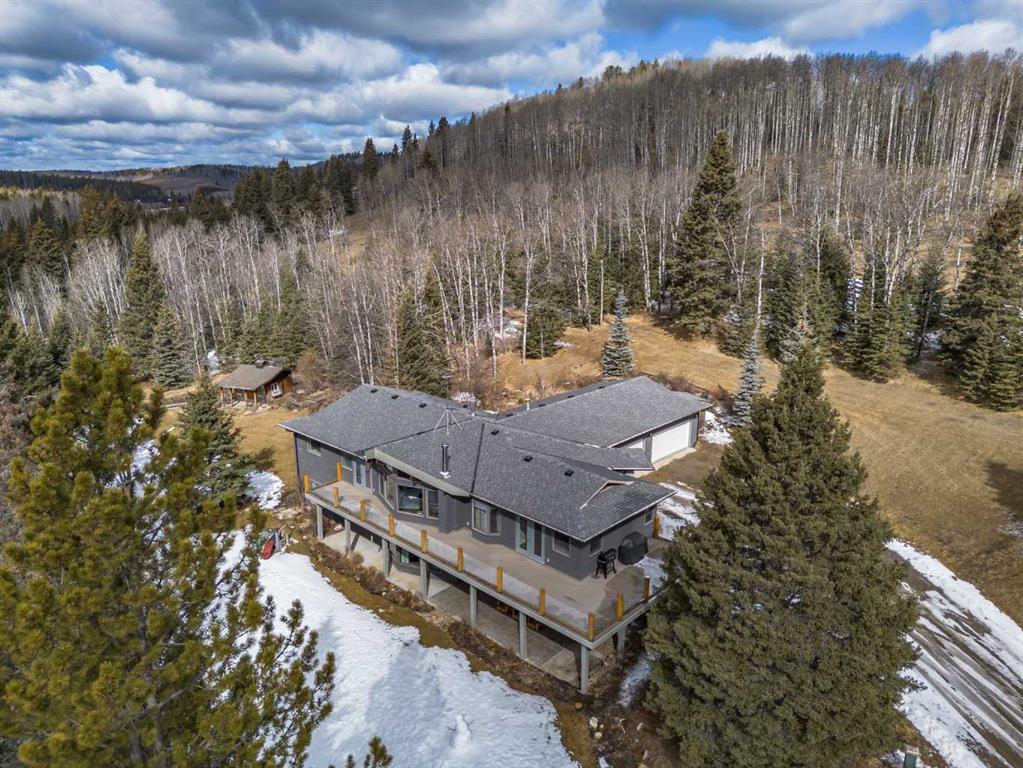 Discover your own private paradise on this stunning 19.85-acre estate, where the Dogpound Creek meanders through a park-like landscape at the rare convergence of lush forest, rolling foothills, and tranquil water features. This beautifully updated walkout bungalow offers a sprawling 4,195 square feet of developed living space, featuring 5 spacious bedrooms and 4 updated bathrooms that provide a cohesive feel throughout. Recent transformations include the addition of a second kitchen and a luxurious second primary suite in the walkout basement—perfect for multi-generational living—while the main level shines with stunning a-frame style living room overlooking your land, and a 2020 exterior overhaul consisting of a new roof, gutters, and a complete deck rebuild. Nestled within a forest of aspen, spruce, and pine, the property is a haven for local bird species and an equestrian’s dream, boasting full fencing, three paddocks, horse shelter, hay shed and an automatic watering system across beautiful undulating terrain. Perfectly positioned for families, you are located on bus route just 15 minutes from the highly regarded Westbrook School, and the home is rounded out by an oversized, heated attached triple garage. This rare sanctuary perfectly balances secluded country living with everyday accessibility, only 30 minutes to Cochrane, a lifestyle that is truly second to none.