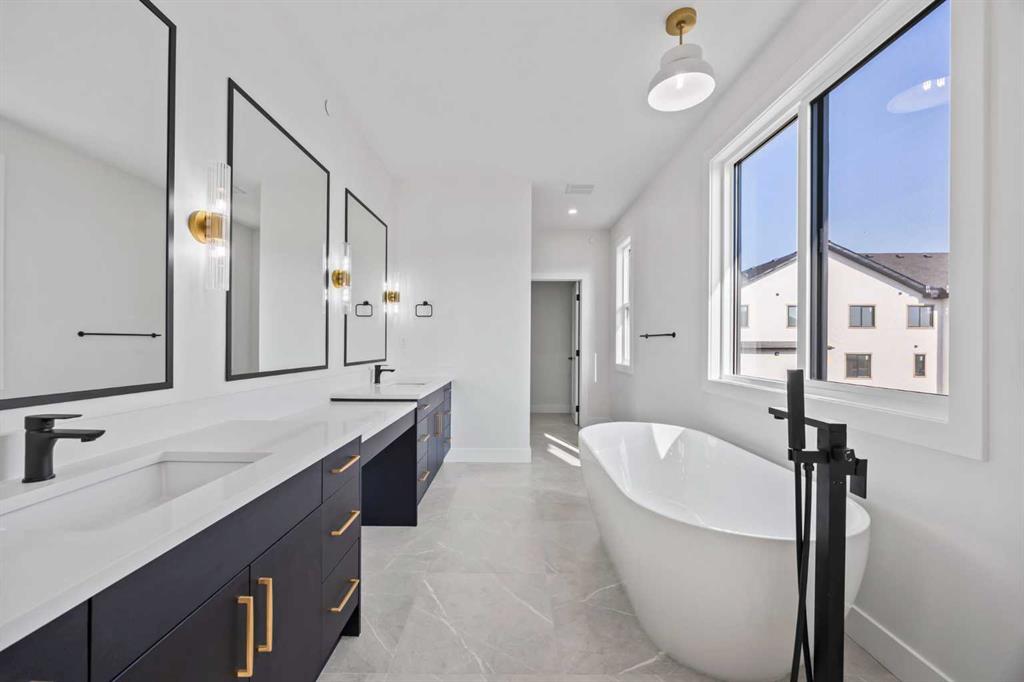 **For a limited time the builder is offering $20,000 in buyer upgrades throughout home (excluding appliances)** Welcome to the brand new development of Knightsbridge in Cambridge Park. Minutes away from access to Stoney Trail and East Hills shopping centre. The Whitehaven is a stunning estate home designed to blend luxury and practicality. Set on a generous 6027 sq ft lot, this home provides an expansive backyard and a side-drive triple car garage. These are not your typical cookie cutter homes. With 3,203 sq ft of living space, this custom-built masterpiece features 5 spacious bedrooms and 4 beautifully designed bathrooms, offering ample room for family and guests. This home is loaded with upgrades including: Main floor full bath, Jack and Jill ensuites for added convenience, High ceilings & a Spice kitchen to enhance your culinary experiences. Inside, the main floor exudes elegance with rich hardwood flooring and 9 ft ceilings with 8 ft doors, and striking black-framed windows that invite natural light. The gourmet kitchen is a chef’s dream, complete with an oversized island, a secondary spice kitchen, sleek stainless steel appliances. An open concept formal dining and living area set the stage for gatherings. The main floor also includes a flex room as well as a 4 pc bathroom. The primary suite on the upper floors is a true sanctuary with a freestanding tub and a custom-built closet. The home’s thoughtful design continues with 3 more generous sized bedrooms on the second floor, a bonus room for entertaining, a Jack & Jill ensuite bathroom for convenience, as well as a second floor laundry room. . Step outside to enjoy a completed rear deck with steps leading to a private outdoor oasis. This home also offers a triple attached garage allowing plenty of space for extra parking. This community is within minutes to Calgary, Chestermere, and East Hills, 18 minutes to Downtown Calgary, and provides quick access to Stoney Trail, Highway 1, and McKnight Blvd making it easy to get anywhere in and around the city. Located near shopping centres, Costco, public and private schools, Khalsa school's, parks, and many other amenities, while still offering quiet country-living with wide open green spaces, walking paths, and playgrounds.