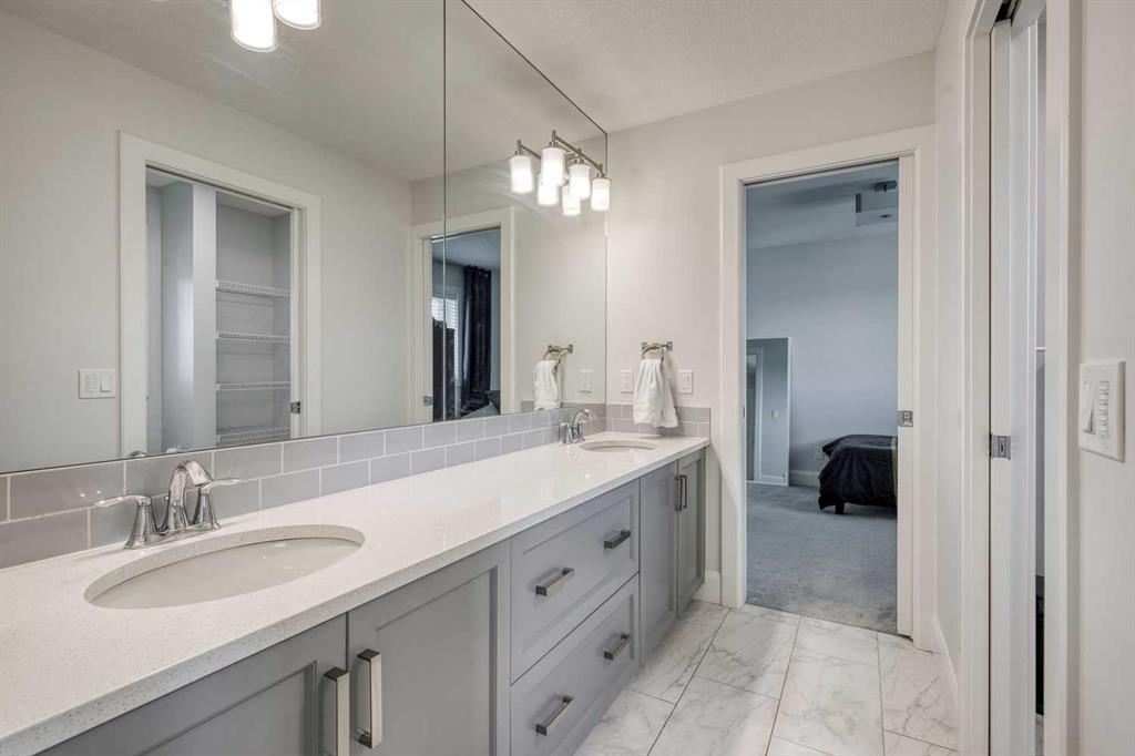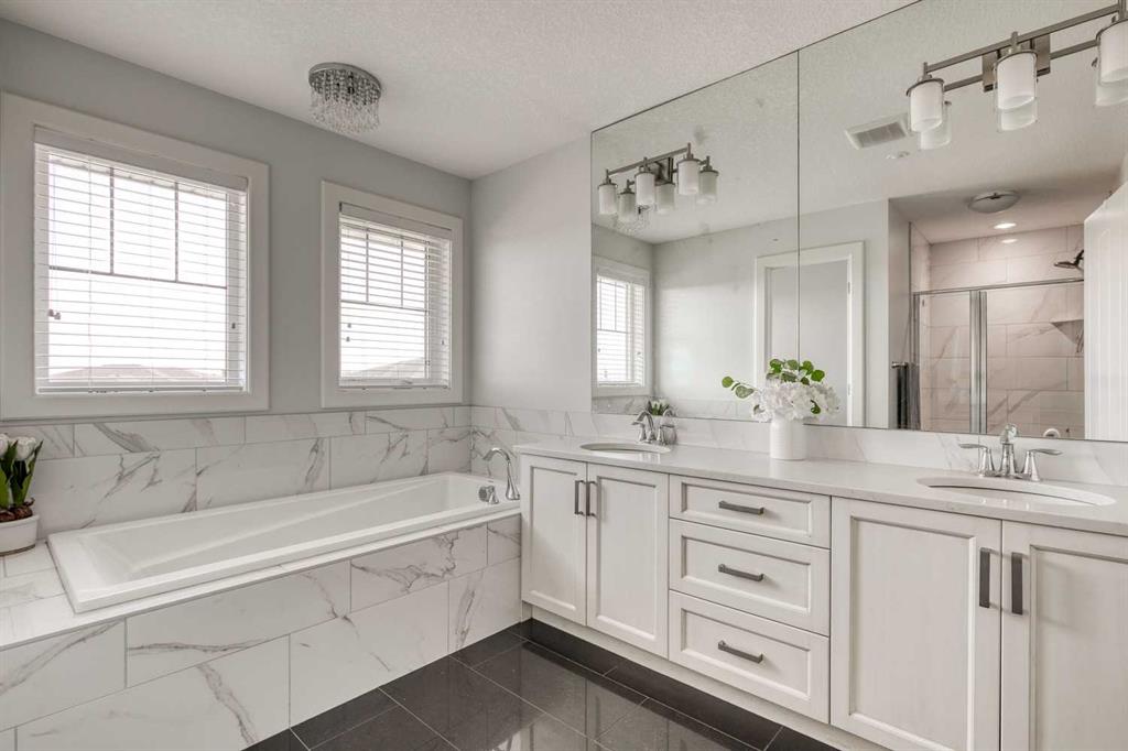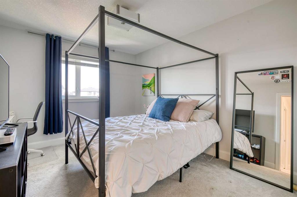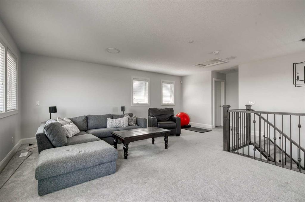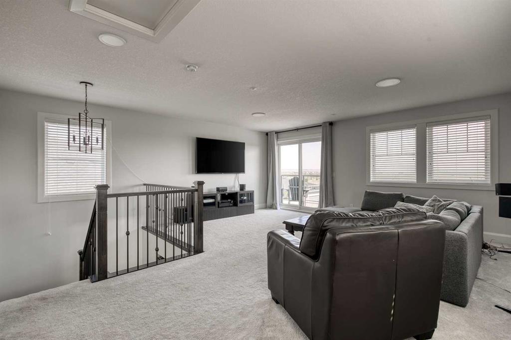 Welcome to this stunning detached 3 storey in Harmony, Springbank’s premier lake community—just 8 minutes from Calgary. Perfectly situated on one of the area’s most desirable streets, this home impresses from the start with its striking exterior design, lush landscaping, and timeless curb appeal. Inside, the main floor is designed for both everyday living and stylish entertaining with 9 ft ceilings and beautiful hardwood floors. The spacious living room features a cozy gas fireplace, while the adjacent den offers flexibility as a home office, playroom, or creative space. Host dinner parties in the formal dining room, or gather around the show-stopping kitchen—complete with quartz countertops, stainless steel appliances, a large island with breakfast bar seating, and abundant cabinetry. A casual dining nook and hidden walk-in pantry ensure both elegance and functionality. Beyond the mudroom, step outside to a west-facing backyard with a cedar deck, fire pit, and triple detached garage that is insulated with a gas line, shelving and full electrical panel. It even has a foundation to potentially build a carriage suite on top (subject to approval and permitting by the city/municipality)! Thoughtful details like a stylish powder bath with designer wallpaper and plenty of storage closets make this floor as practical as it is beautiful. Upstairs, a versatile flex space connects to the serene primary, where a walk-in closet and spa-inspired 5-piece ensuite await—featuring dual quartz vanities, a soaker tub, and a separate enclosed shower. Two additional bedrooms share a Jack-and-Jill bathroom, while a spacious laundry room with storage keeps everything organized. The third floor is a retreat of its own, offering a fourth bedroom with ensuite, a generous bonus room, and a private balcony with sweeping north and east views—the perfect spot to enjoy your morning coffee at sunrise. While undeveloped, the sprawling basement offers an additional 1,313.75 sqft of potential living space with rough-in for another bathroom. Recent upgrades include new floors on the main floor and stairs (2024), new Bosch refrigerator (2025), new dishwasher (2025), new dryer (2025) and new Jacuzzi hot tub (2022). Living in Harmony means more than just owning a home—it’s embracing a lifestyle. From lakeside living and world-class golf to endless trails and breathtaking Rocky Mountain views, this community connects you to the people, moments, and experiences that matter most. Don’t miss the chance to make this one-of-a-kind property your next home.