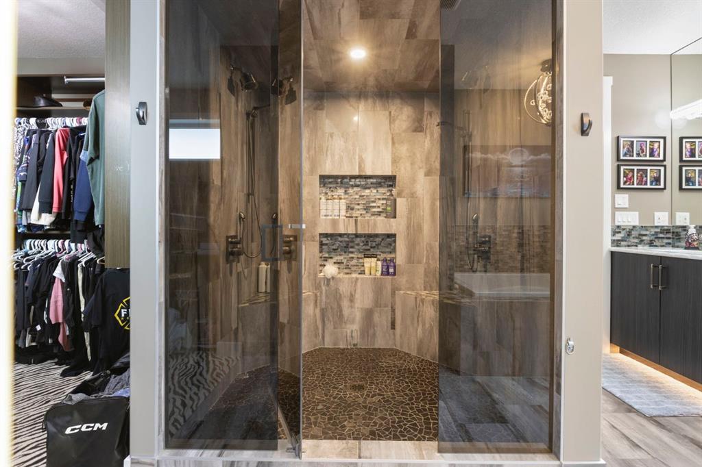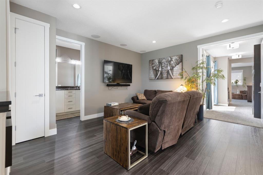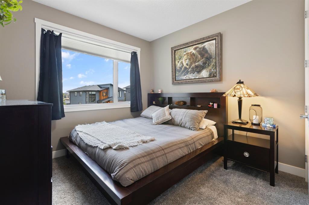 Welcome to this fully loaded luxury home designed with every detail in mind. Offering over 4,000 SF of finished living space, 6 bedrooms, and over $300K in recent upgrades inside and out, this home is truly perfect for a large or growing family. From the oversized heated 3-car garage with epoxy floors to the stunning indoor/outdoor living spaces, this property offers the ideal balance of function, comfort, and lifestyle. The heart of the home is the chef-inspired kitchen featuring leathered granite counters, under-cabinet lighting, high-end stainless steel appliances including a 5-burner gas stove, convection oven, LG fridge with sphere ice maker, microwave, plus a second fridge and wine fridge in the large pantry. A dedicated coffee station makes mornings effortless. The main floor also includes a private office, an expansive living room with a dramatic two-way fireplace, plus laundry with a convenient laundry chute. Upstairs, retreat to the luxurious owners’ suite with its private balcony, coffee station, custom dressing room, and spa-inspired ensuite with heated floors, marble vanities, oversized glass shower, skylight, and jetted tub. Three additional bedrooms with blackout shades, a full bathroom with double sinks, and a versatile bonus/games room complete the upper level. Remote blinds on front and upper bedroom windows have been add both comfort and privacy. The basement is designed for entertaining and extended family living, a nanny suite or tenant, with a full wet bar (fridge, microwave, dishwasher), second laundry, and a separate entrance. Outdoors, enjoy an automatic 4-season screened-in porch with a louvered roof, gemstone lights, irrigation, raised garden beds, water feature, cushioned turf, and a large storage shed. The low-maintenance yard and side yard access make this space practical as well as beautiful. Additional features include built-in ceiling speakers, water softener, instant hot & cold tap in the kitchen, air conditioning, decorator finishes, and an extra-long driveway with paved alley access. Located minutes from top-rated schools, Bingham Crossing, coffee shops, daycare, and upcoming amenities including a new Costco, Nordic Spa, and the East Harmony Trail extension, this property also offers easy access to downtown Calgary, the Springbank Airport, Calaway Park, and the Rockies. This is more than a home—it’s a complete lifestyle in Harmony with Lake Access. Book your private showing today and experience all the upgrades and comforts for yourself.